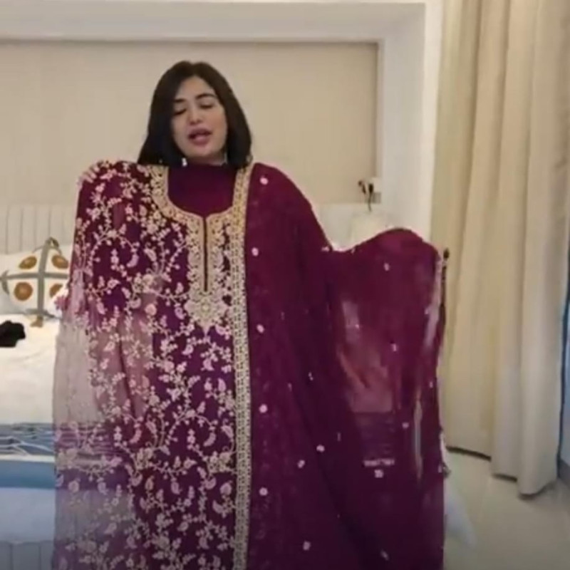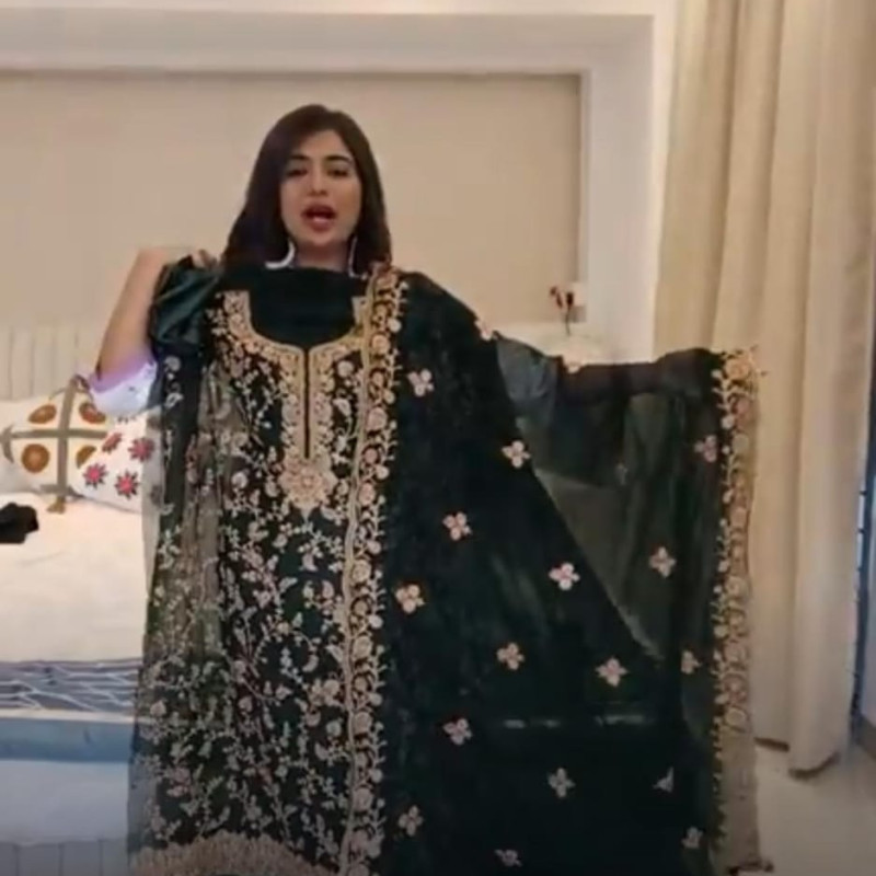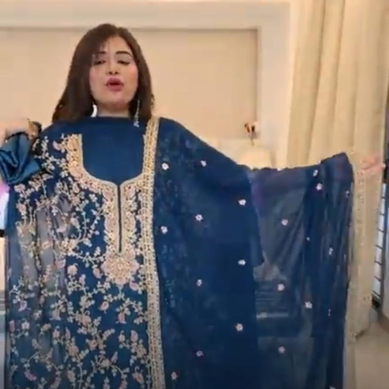 Indian Delhi Boutique Georgette Embroidery Stone Work Four Piece