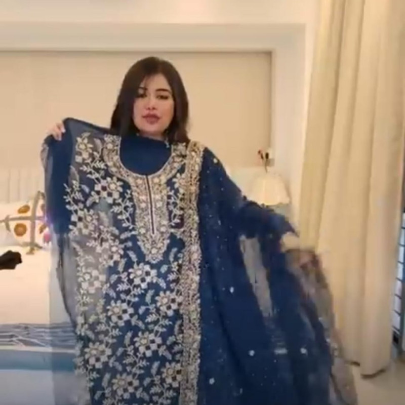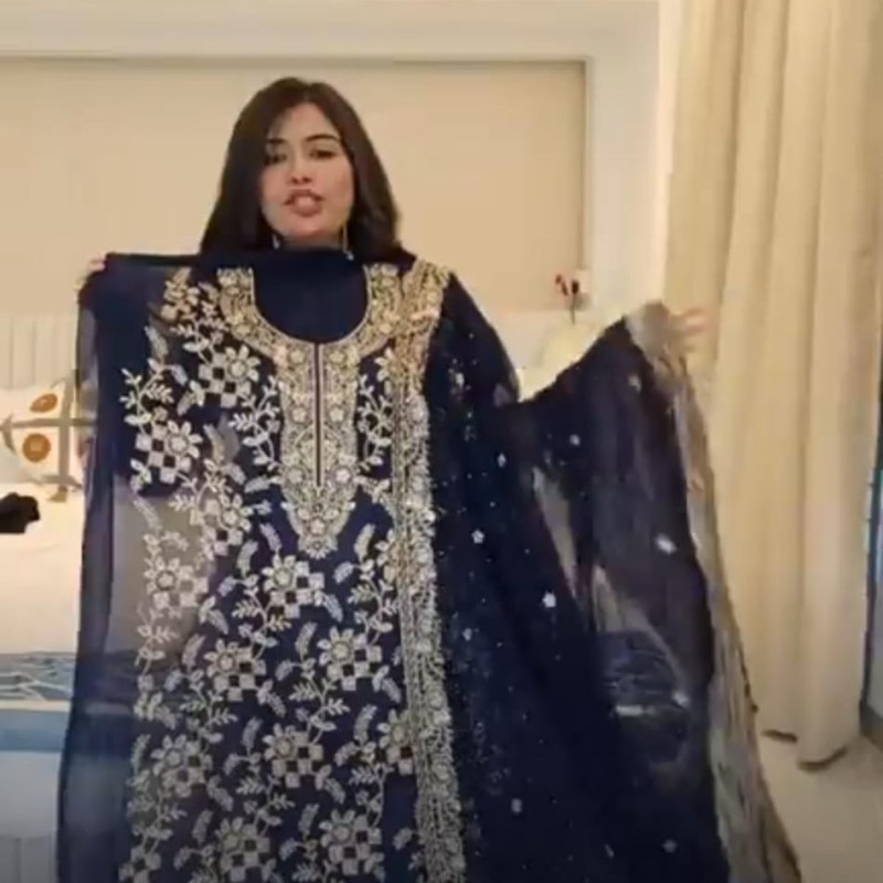 Indian Delhi boutique Georgette Embroidery Stone Work Four Piece