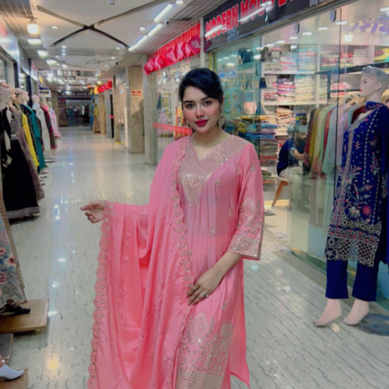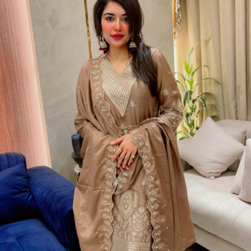 Pure Silk Embroidery Sequence Stitch Garara three piece Body - 50, Long - 40