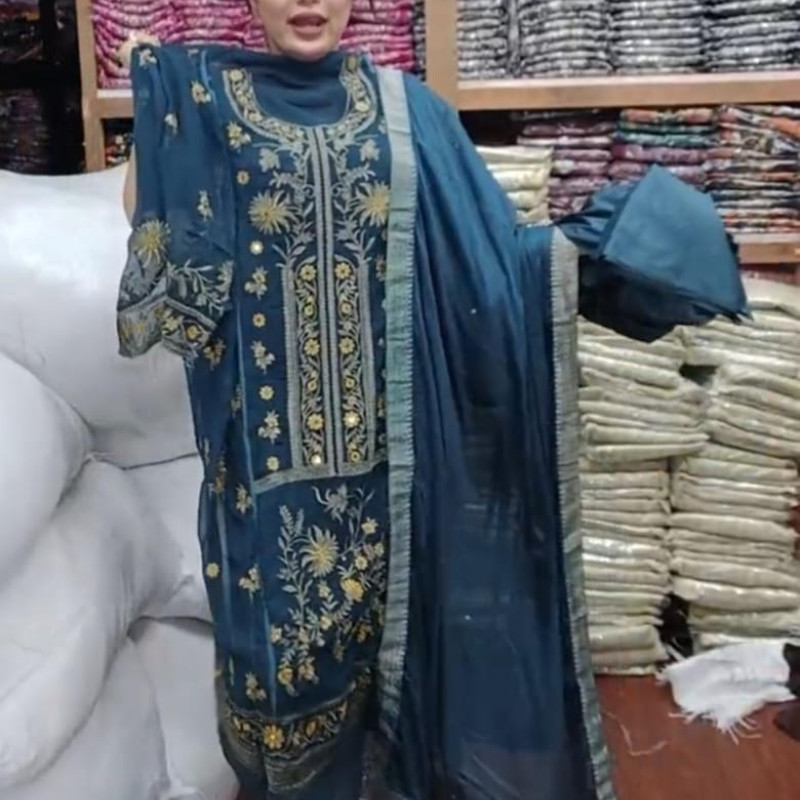 Pure Chiffon Georgette Embroidery Mirror work four piece