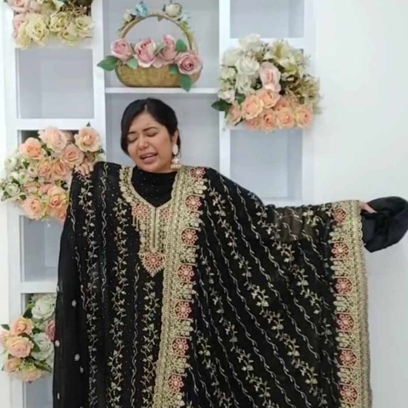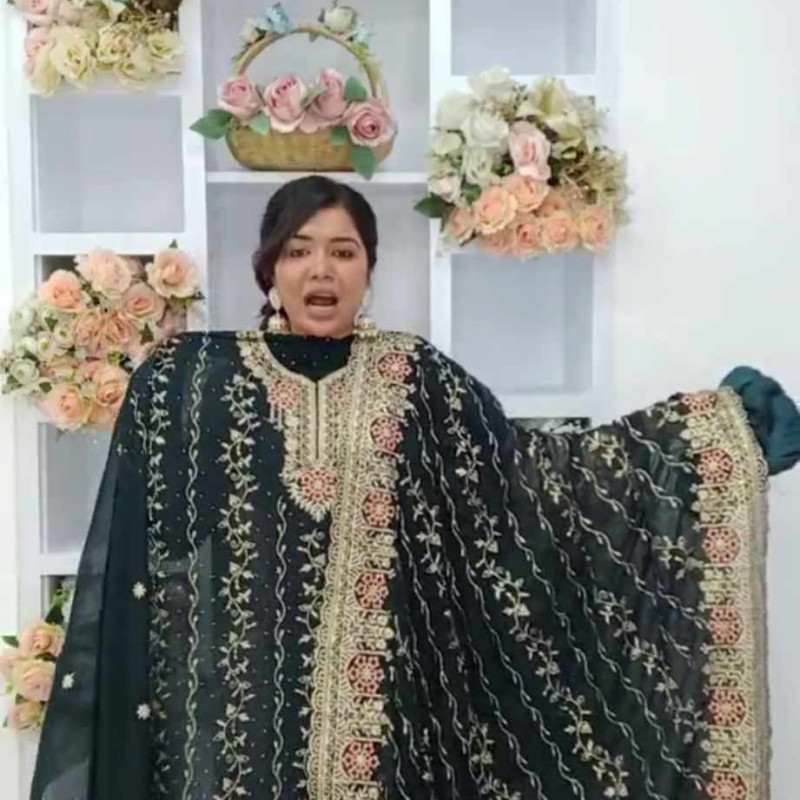 Pure Chiffon Georgette Embroidery Stone Work four piece