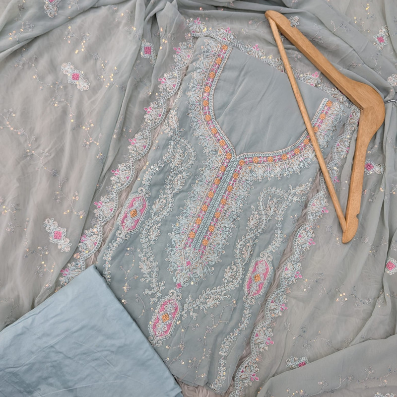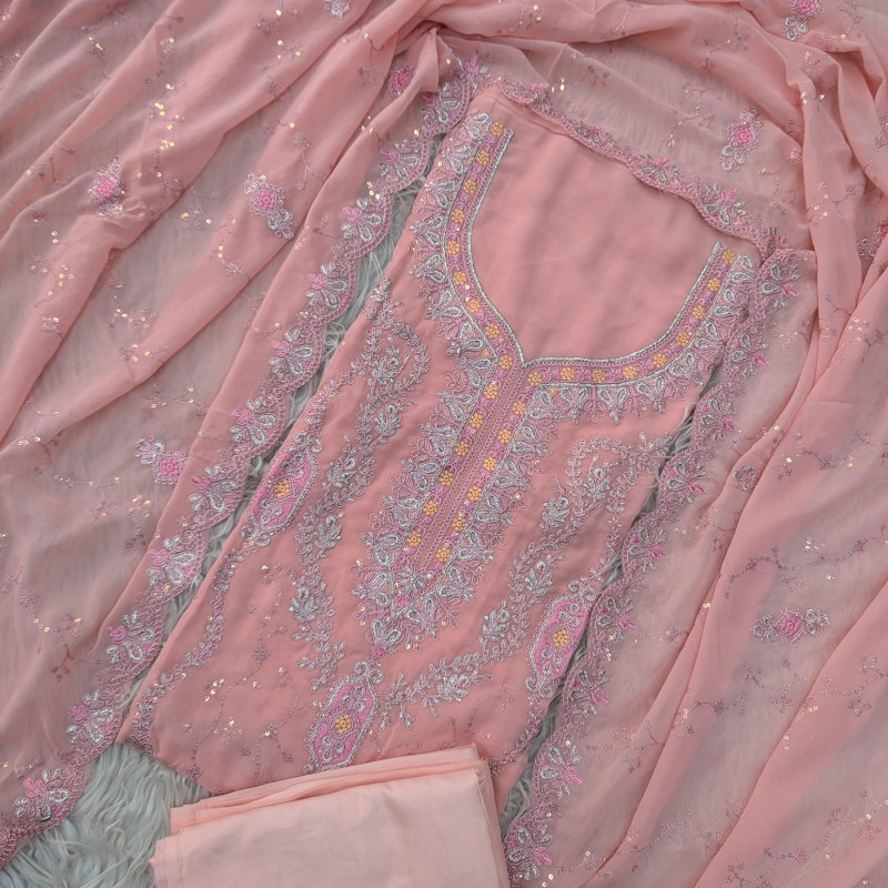 Pure Chiffon Georgette Embroidery Sequence four piece