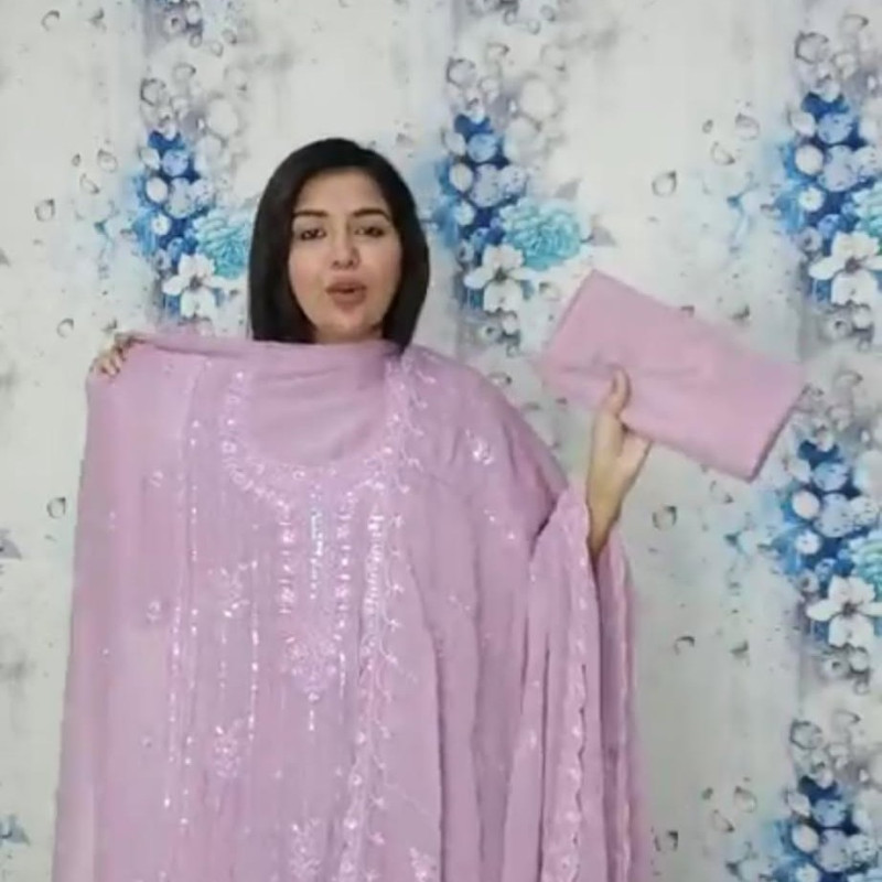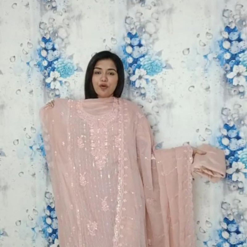 Pure Chiffon Georgette Embroidery Sequence Karchupi Work four piece 1