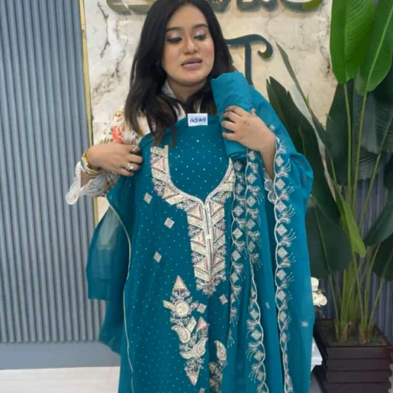Pure Chiffon Georgette Embroidery Stone work four piece