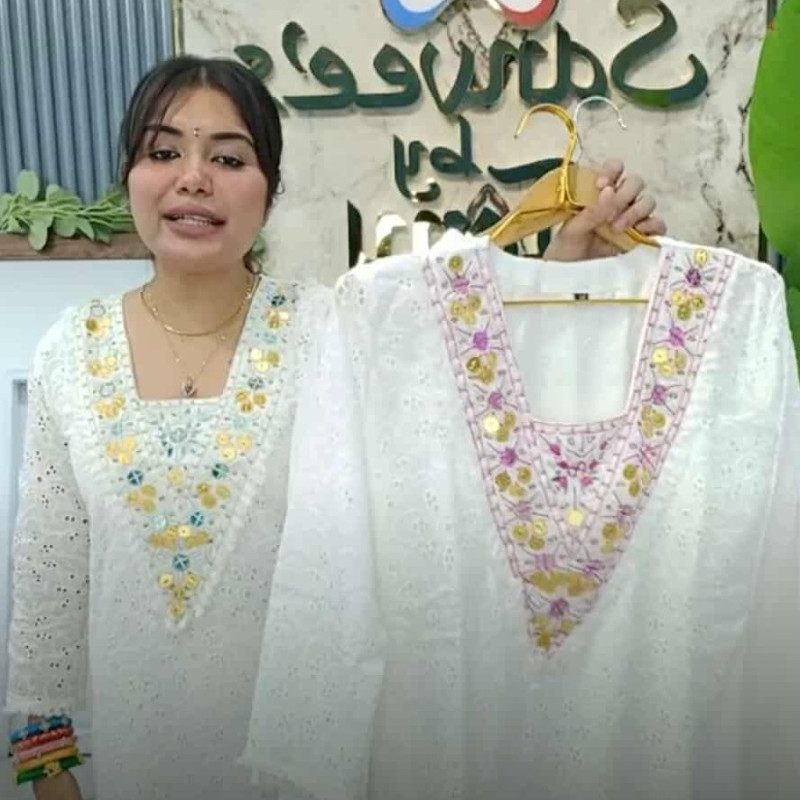 Pure Cotton Chikenkari Embroidery Hand Stitch Mirror work Stitch two piece Size - M(38), L(42), XL(46), Long - 42