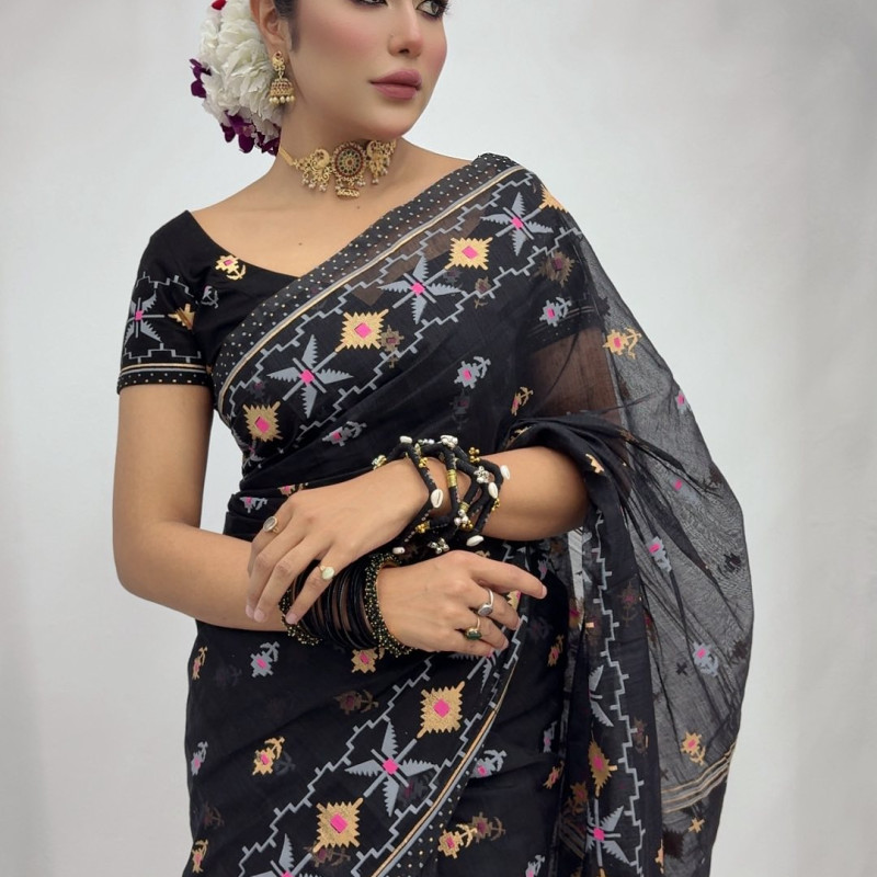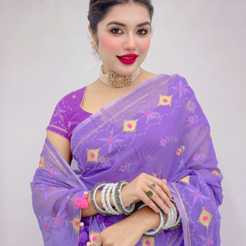 Pure Half Silk Jamdani Skin Print Sharee with blouse piece