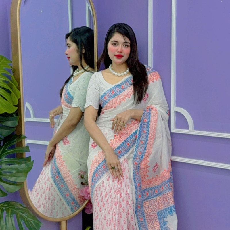 Pure Half Silk Cotton Hand Stitch Dollar Work Sharee with blouse piece