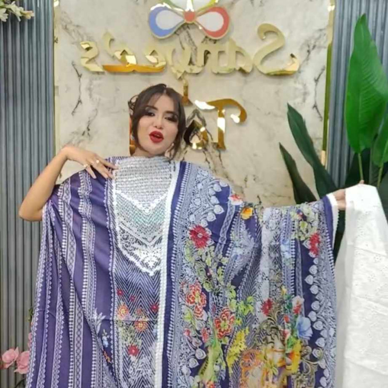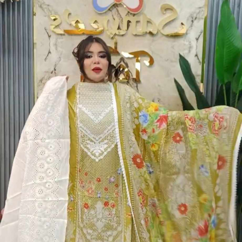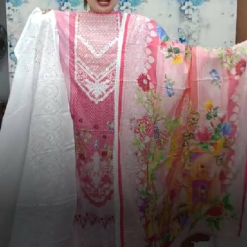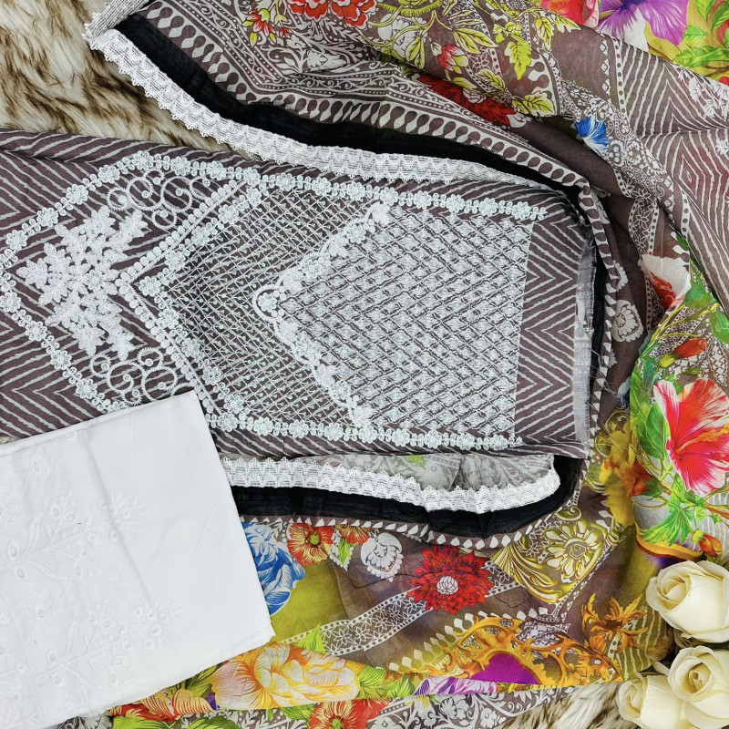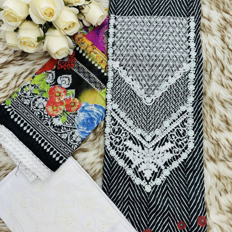 Pure Lawn Cotton Embroidery Sequence Three Piece