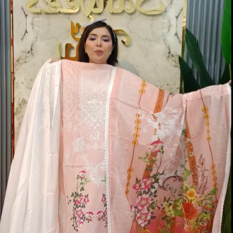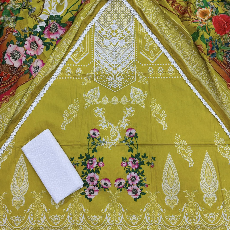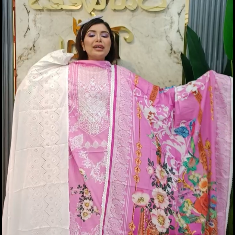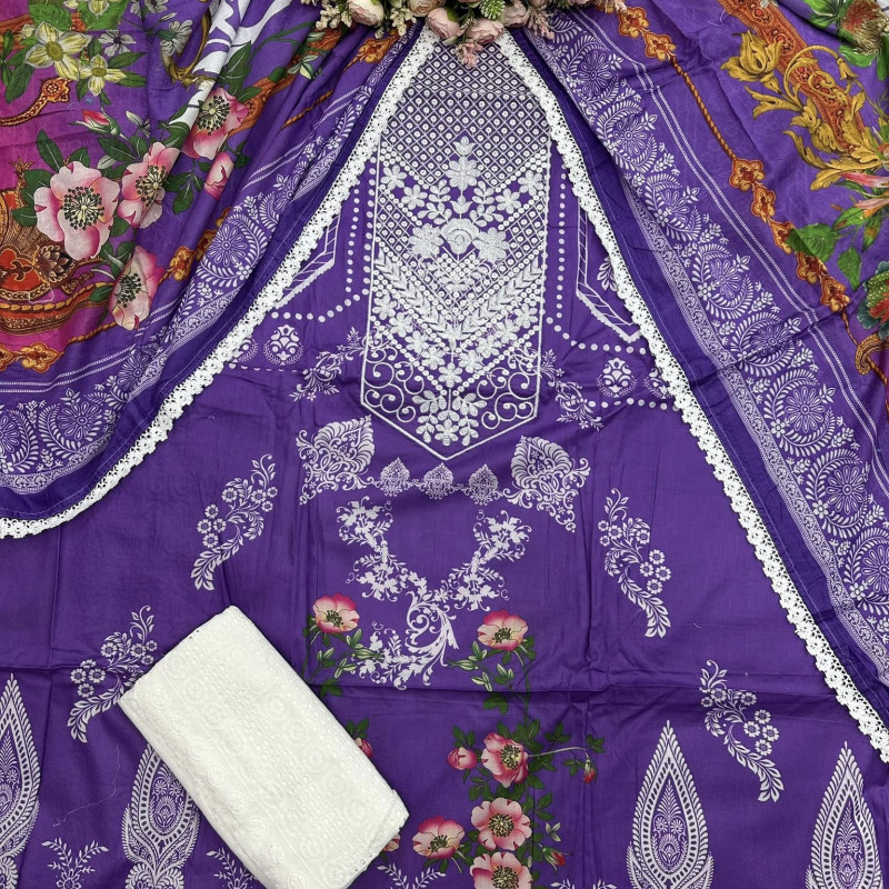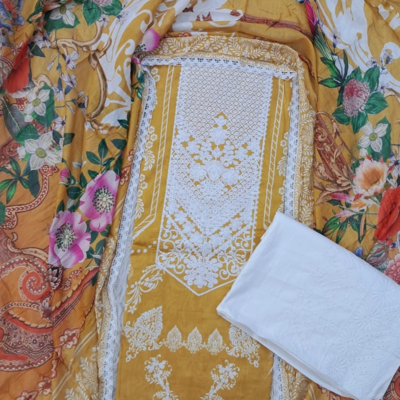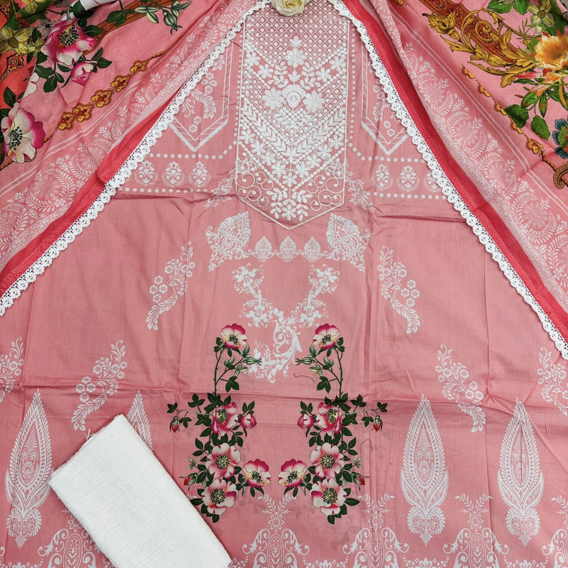 Pure Lawn Cotton Embroidery Sequence Three Piece