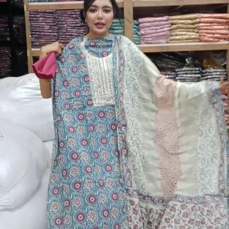 Orginal Indian Joypuri Cotton Embroidery Sequence three piece