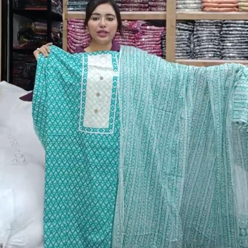 Orginal Indian Joypuri Cotton Embroidery three piece