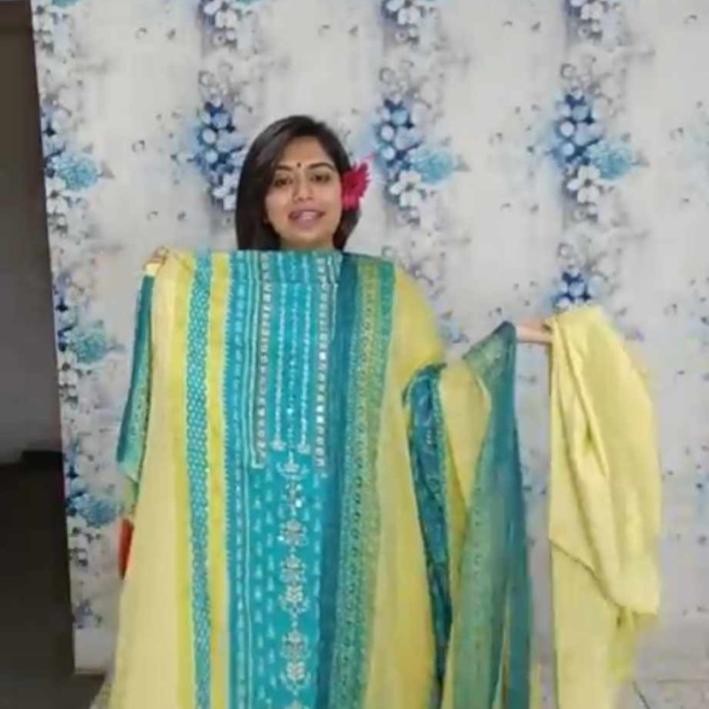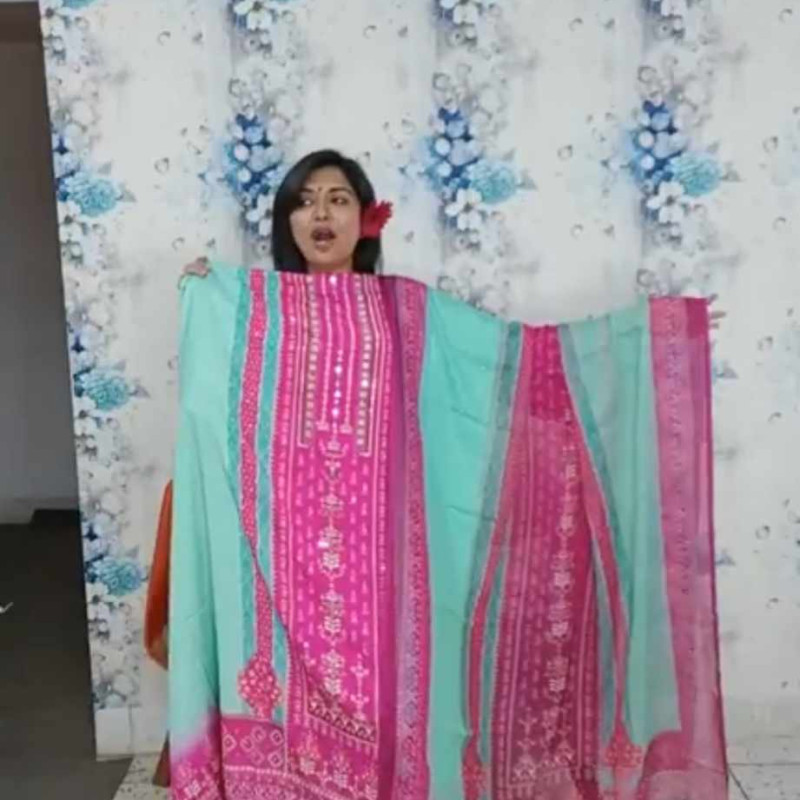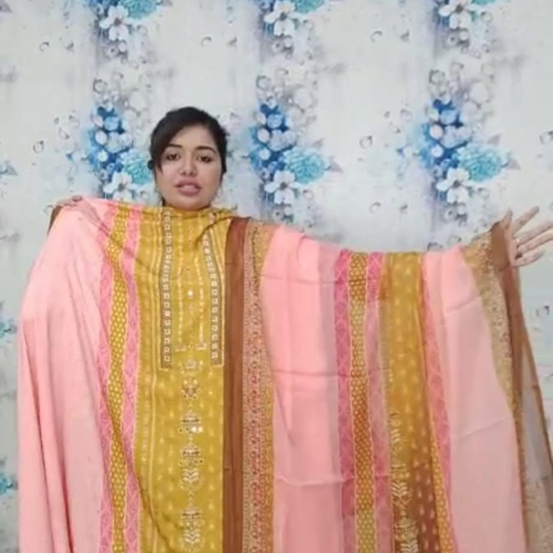 Orginal Indian Lahore Pure silk Embrodiery Stone Mirror work three piece