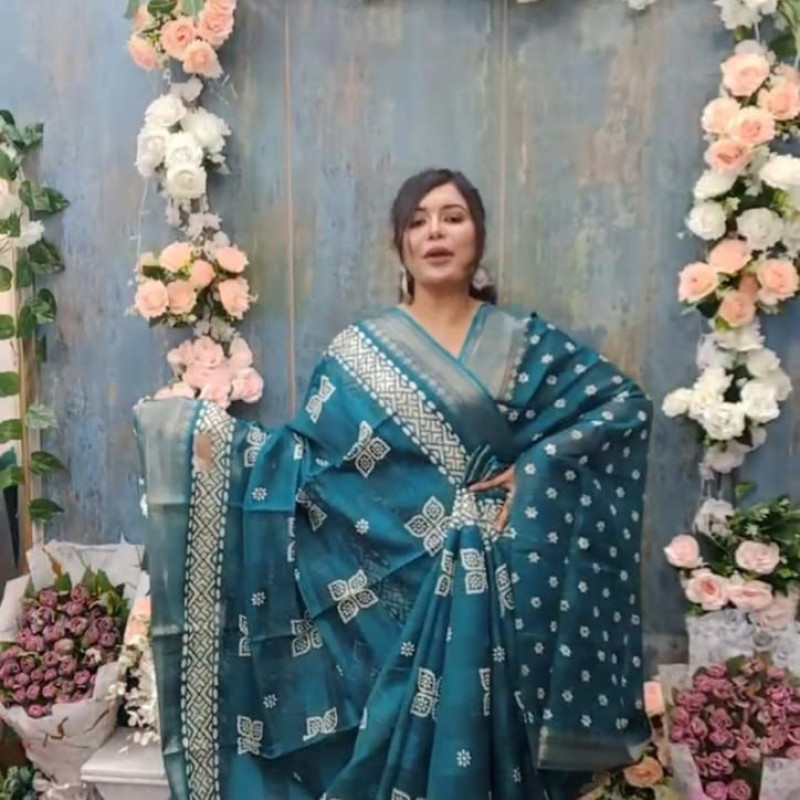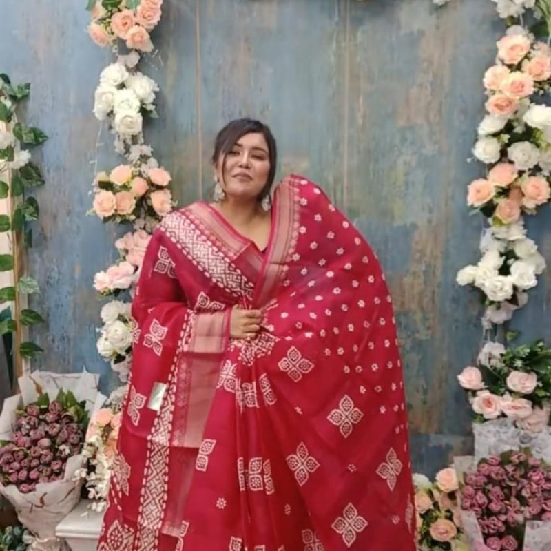 Orginal Indian Raj Silk Villa Crispy Lilen Sharee with blouse piece