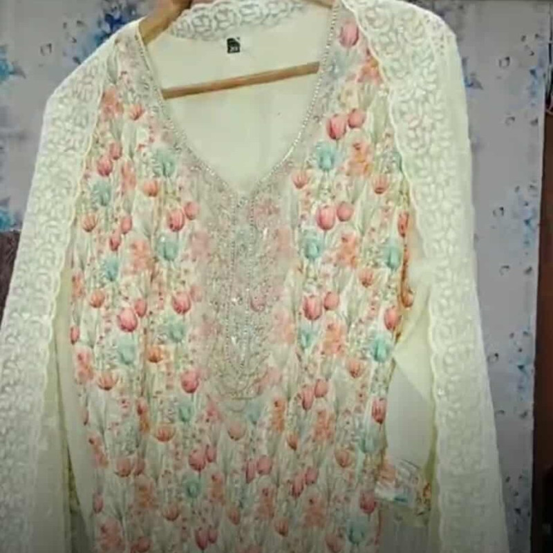 Pure Chiffon Georgette Embroidery Sequence Stitch three piece Size - 38,40,42,44