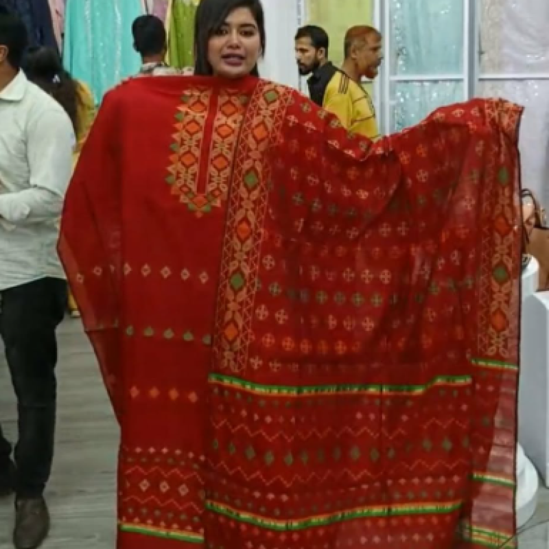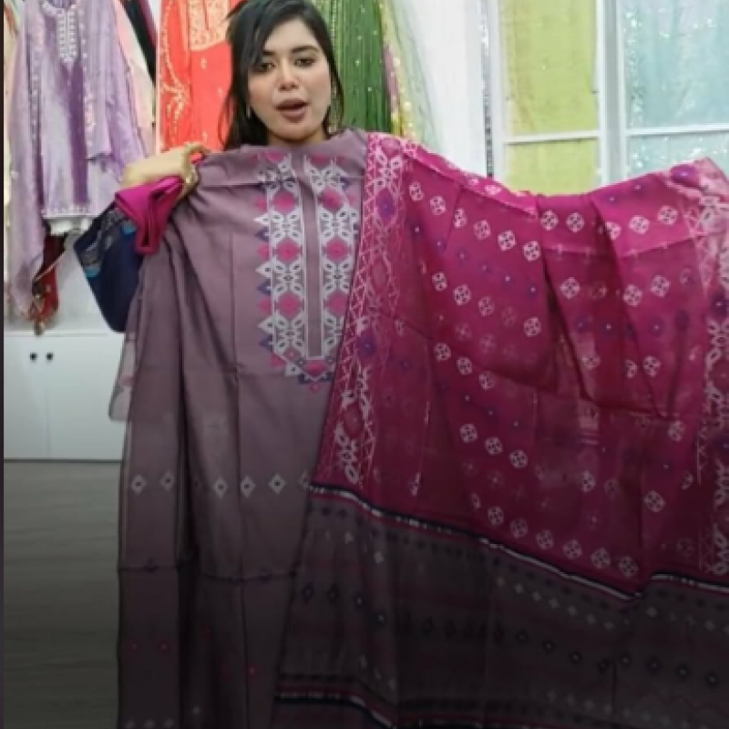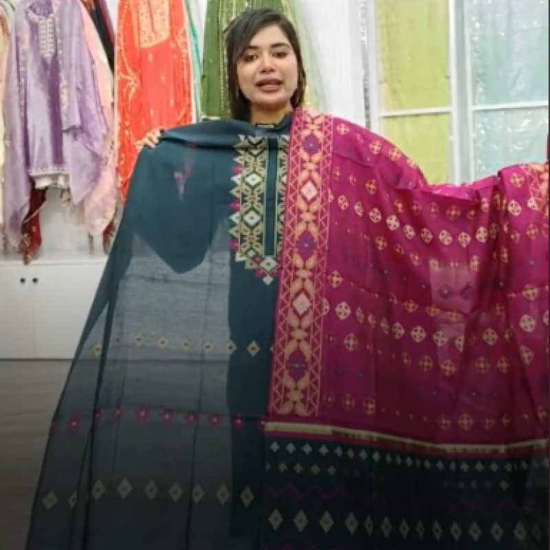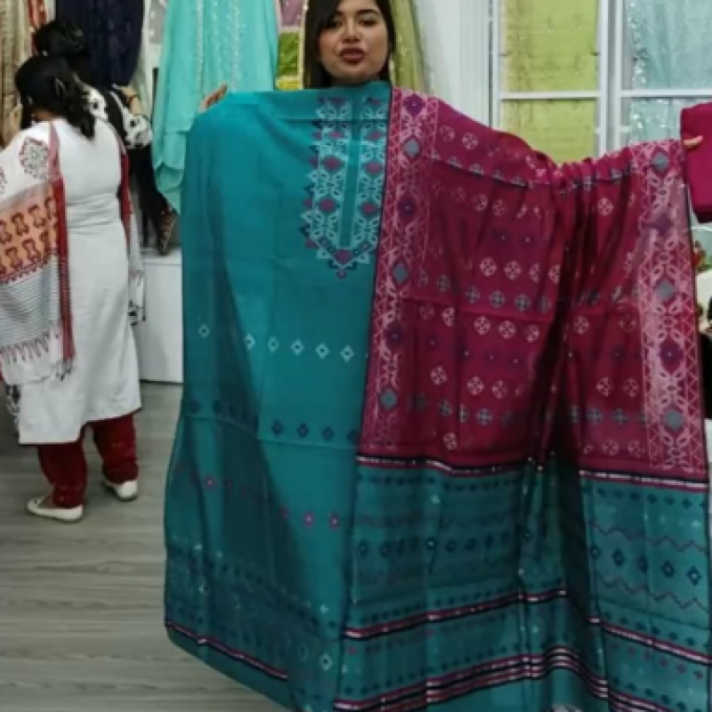 Orginal Premium Half Silk Cotton Jamdani three piece /-