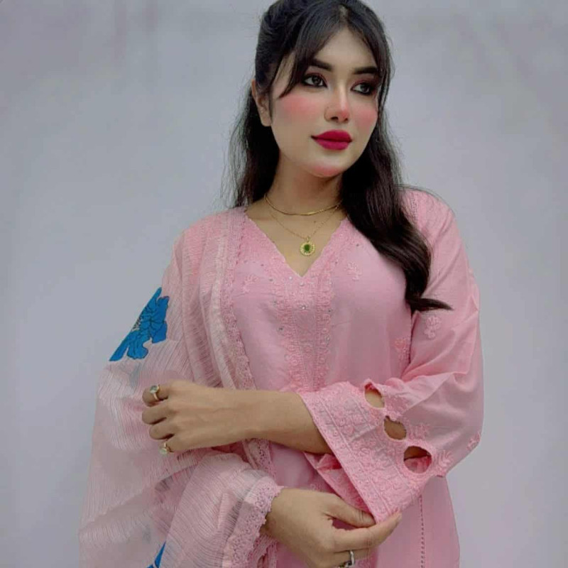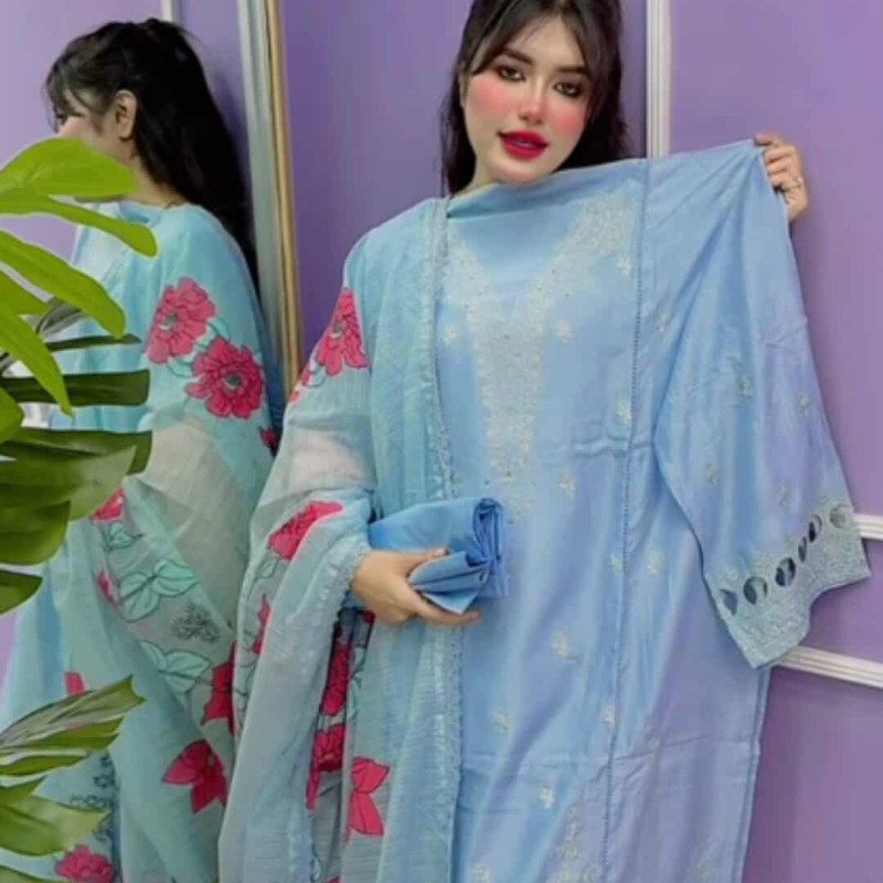 Pure Maslin Cotton Embroidery Dollar work three piece