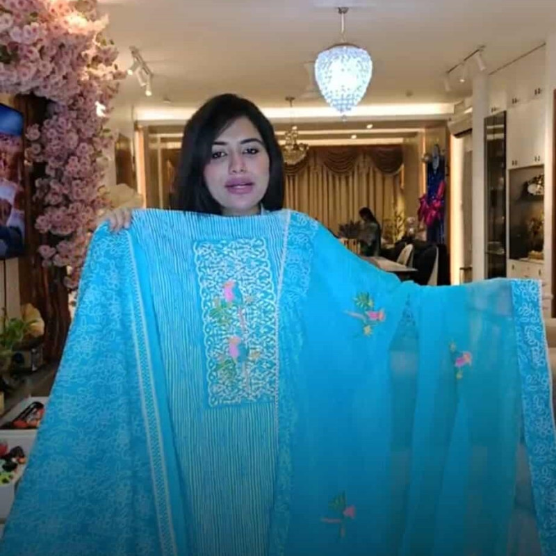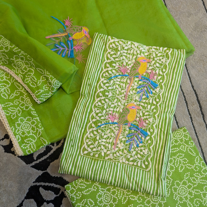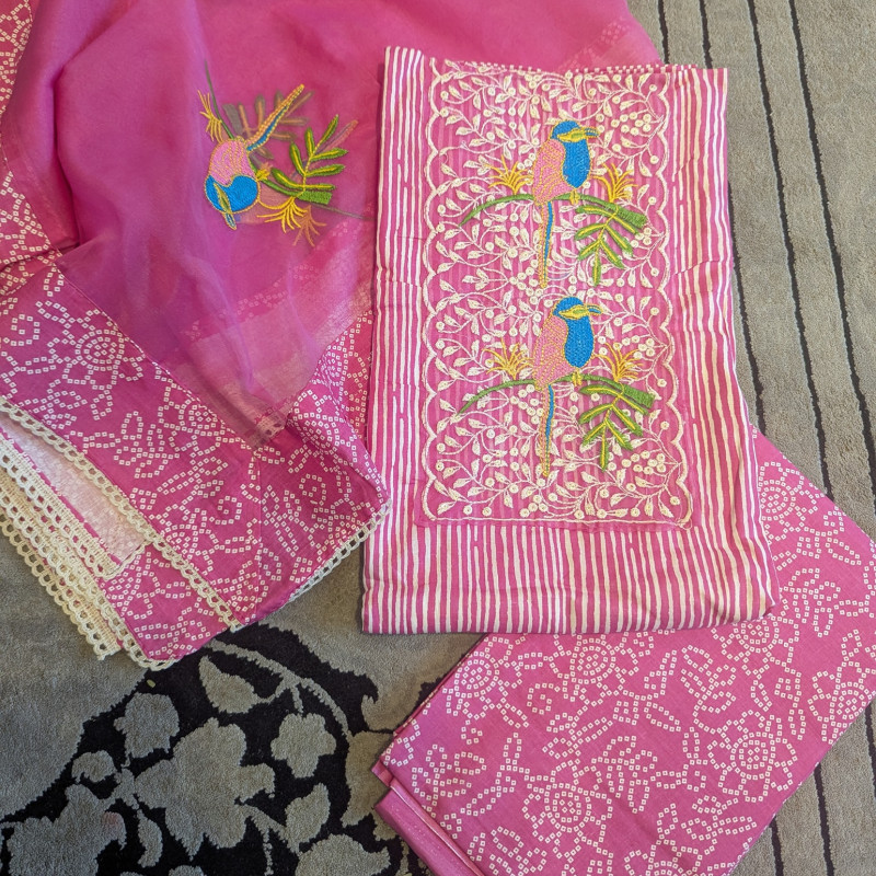 Original Indian Premium Cotton Embroidery Sequence three piece