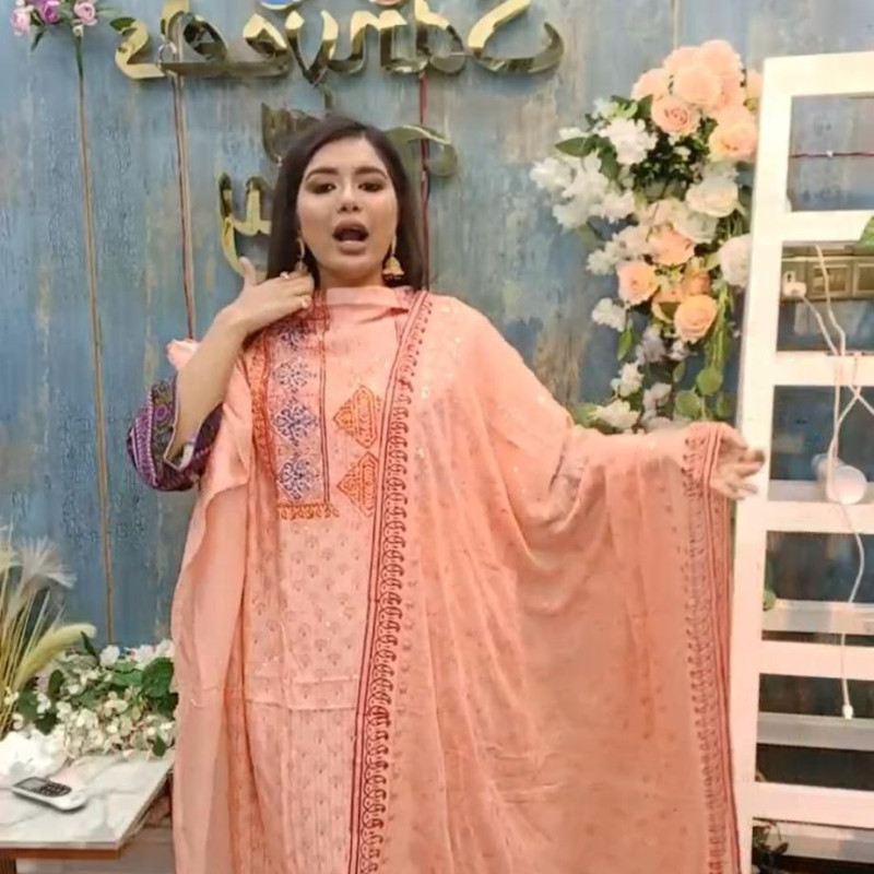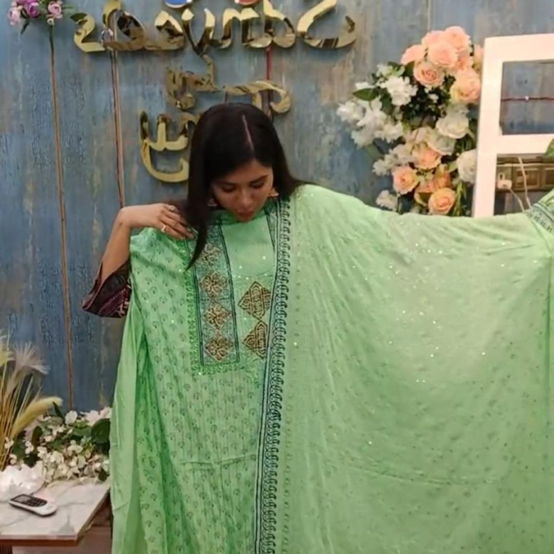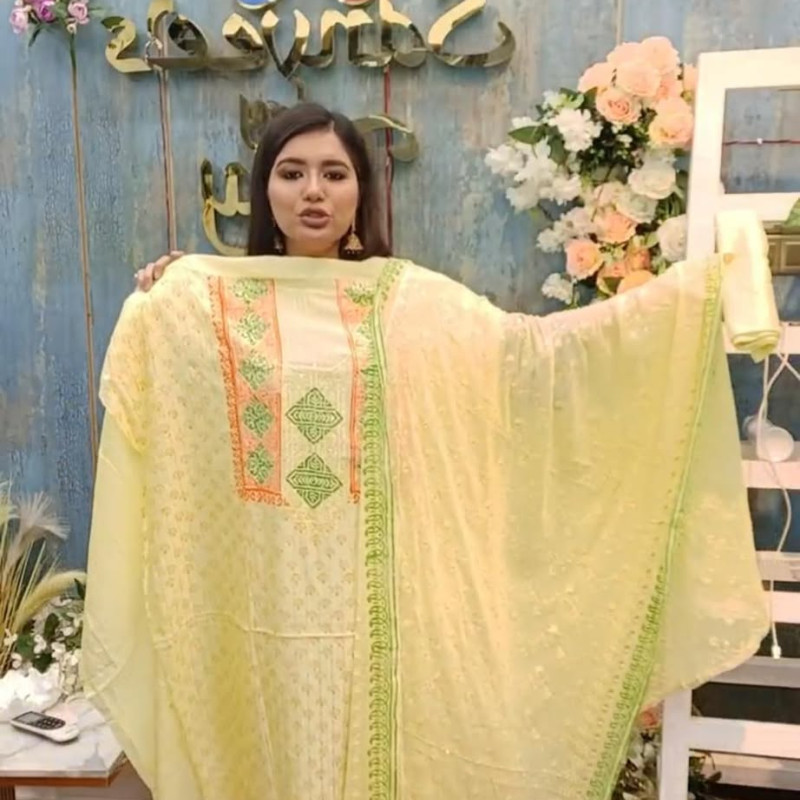 Original Indian Joypuri Boutique Khaddi Silk Embroidery Sequence three piece