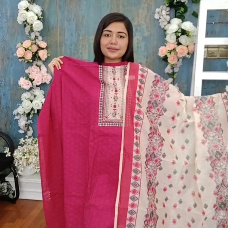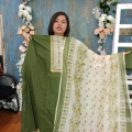 Orginal Indian Joypuri Chikenkari Cotton Hand Stitch Work Cotton three piece /-