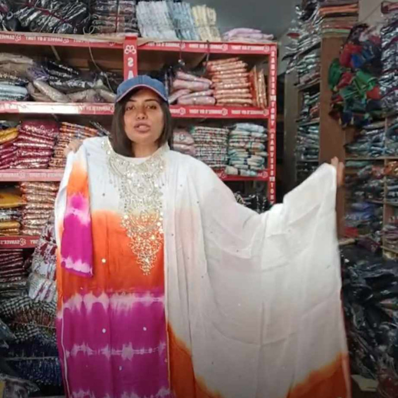 Pure Silk Cotton Karchupi Stone Mirror work Stitch two piece Body - 48, Long - 42 /-