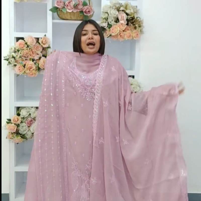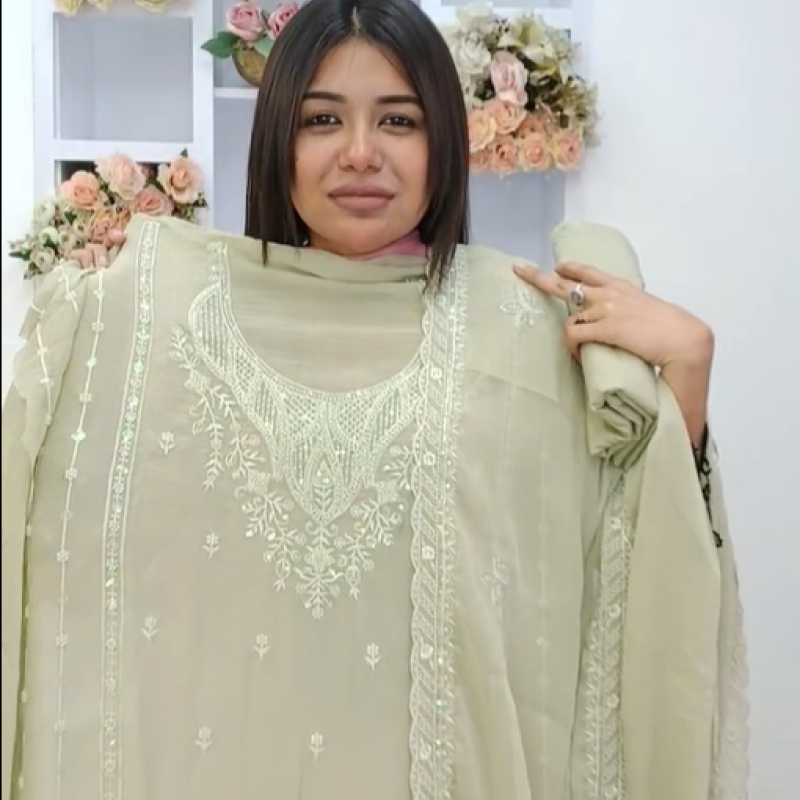 Pure Maslin Embroidery Sequence Karchupi work four piece