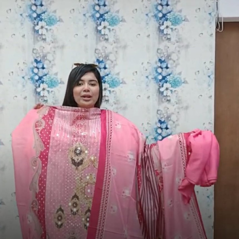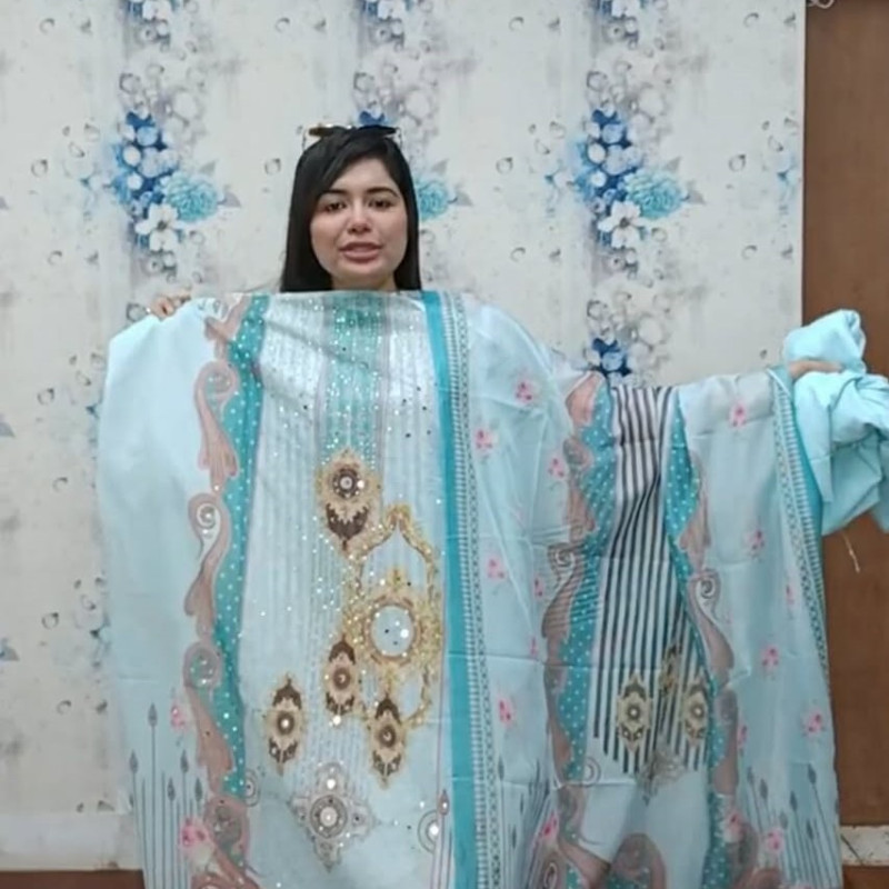Pure Chandri Silk Karchupi Stone Mirror Work four piece