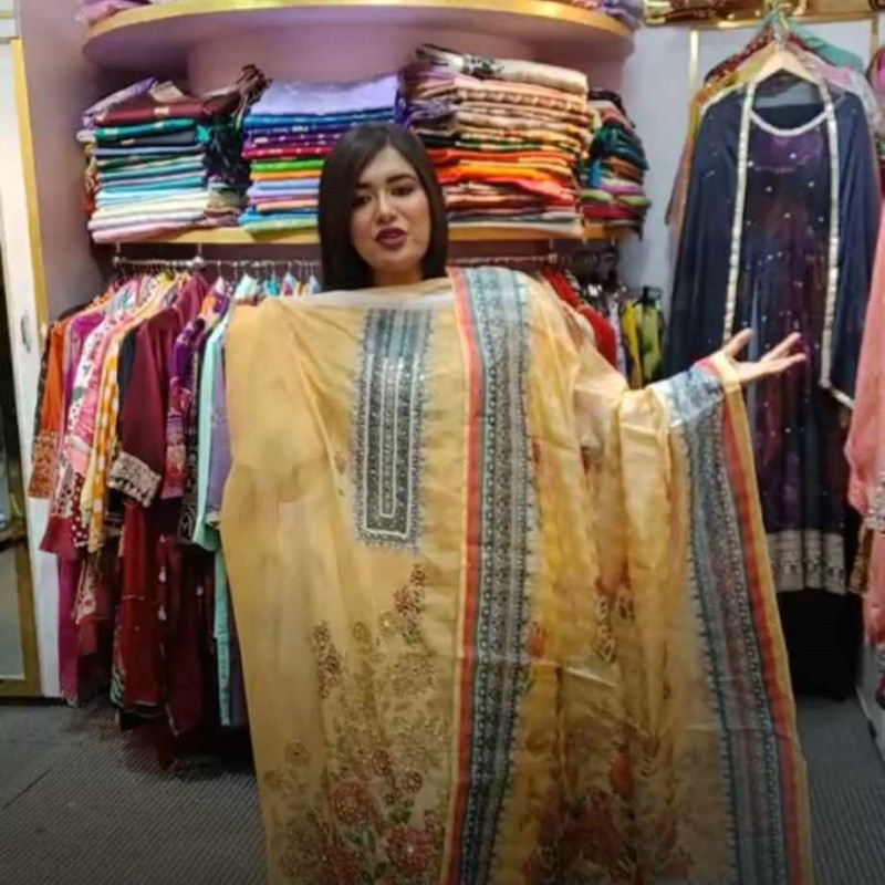 Pure Semi maslin Embroidery Karchupi work four piece