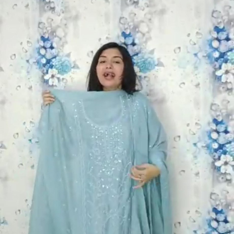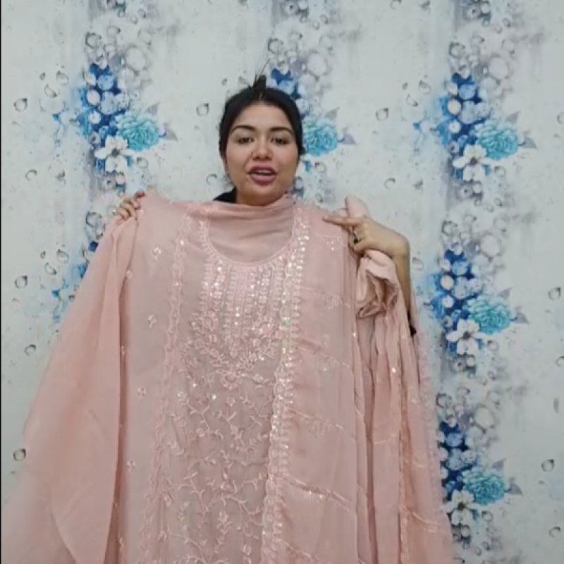 Pure Chiffon Georgette Embroidery Sequence Karchupi Work four piece