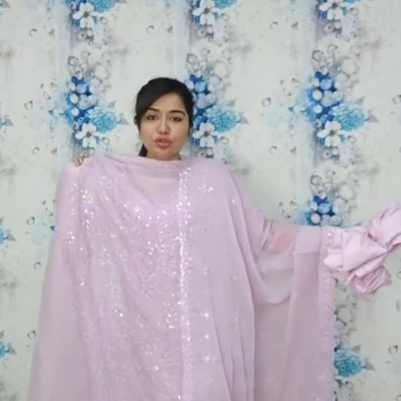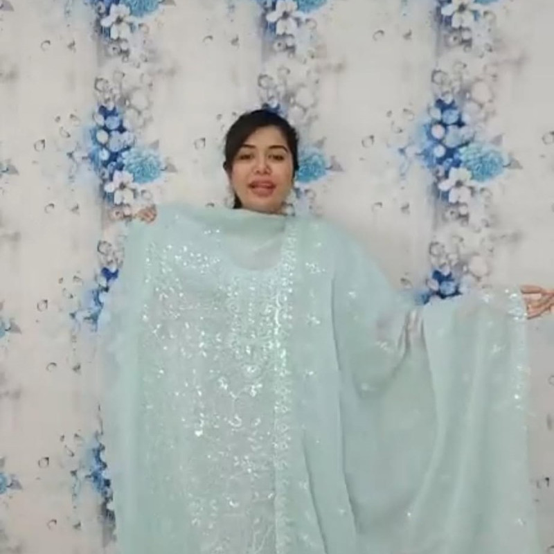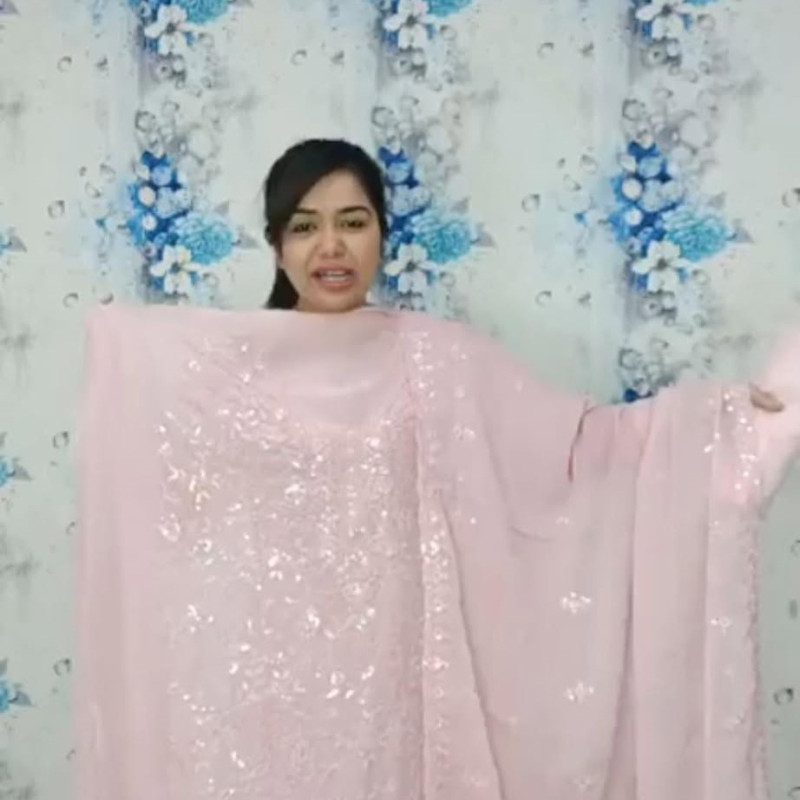 Pure Chiffon Georgette Embroidery Sequence Karchupi Work four piece