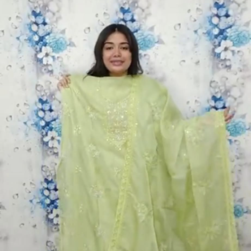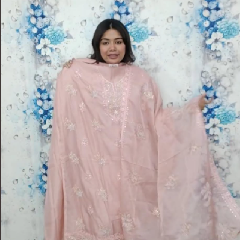 Pure Maslin Embroidery Sequence Karchupi work four piece
