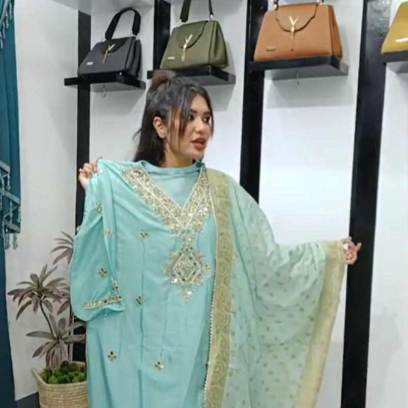 Silk cotton karchupi work three piece Body 48 plus Long 46