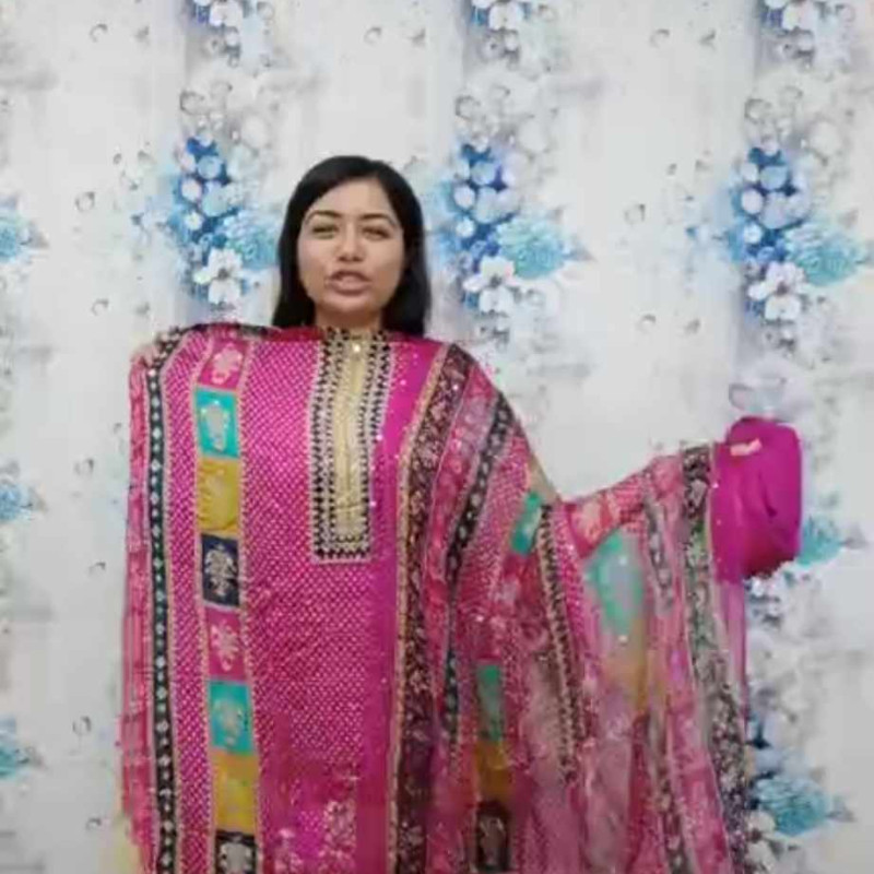 Orginal Indian Lahore Pure Silk Embrodiery Stone Mirror work three piece