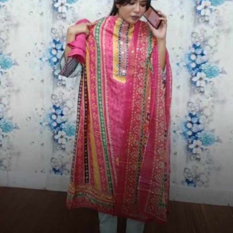 Orginal Indian Lahore Pure Silk Embrodiery Stone Mirror work three piece Delivery charge free