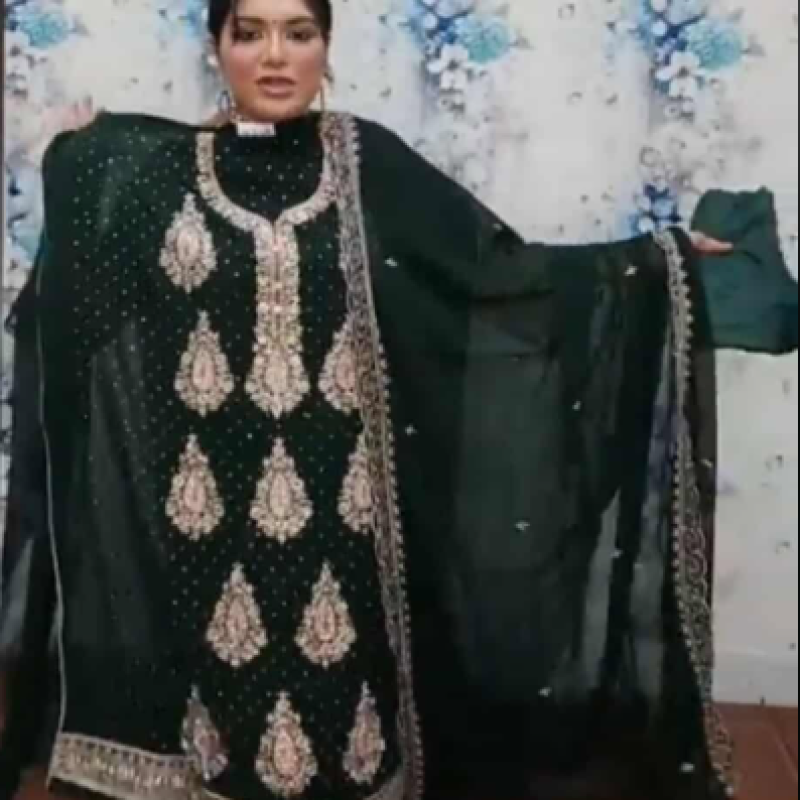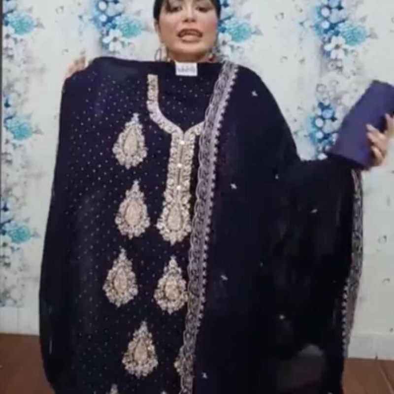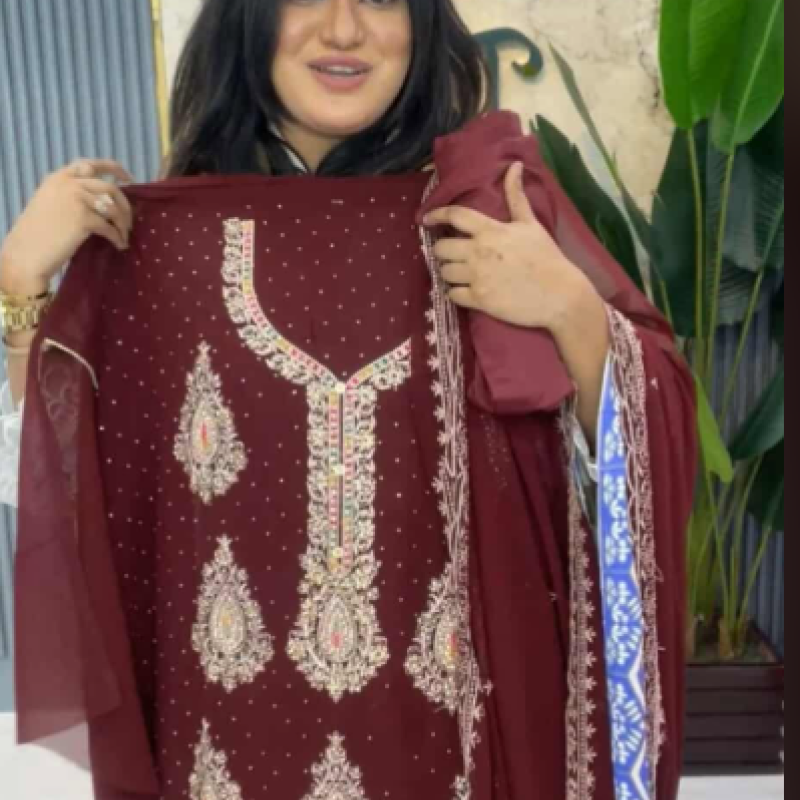 Pure Chiffon Georgette Embroidery Stone work four piece 2050/-