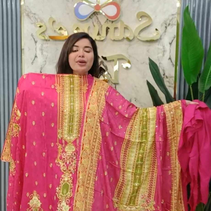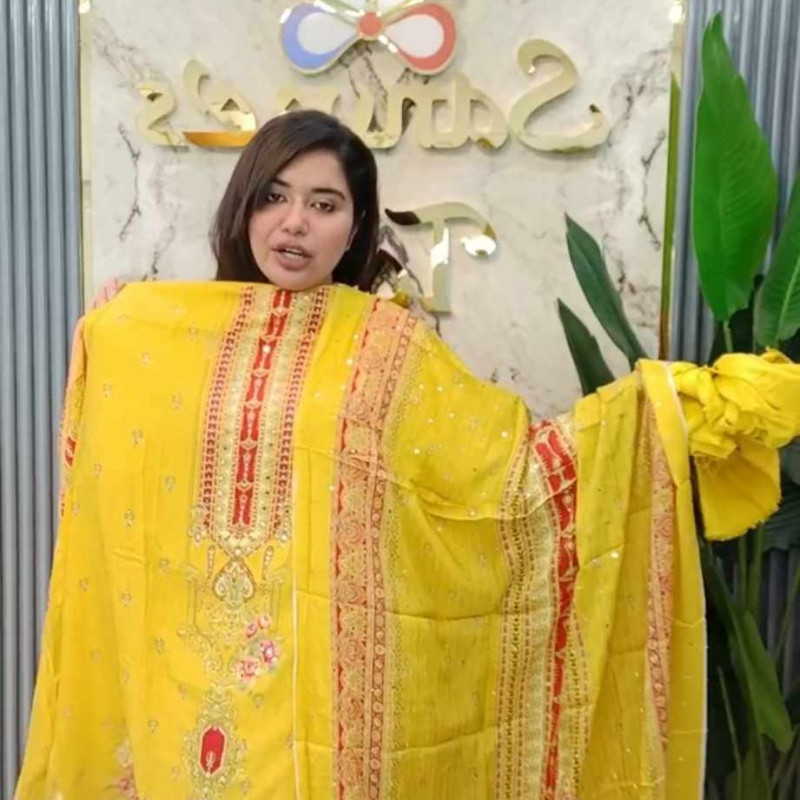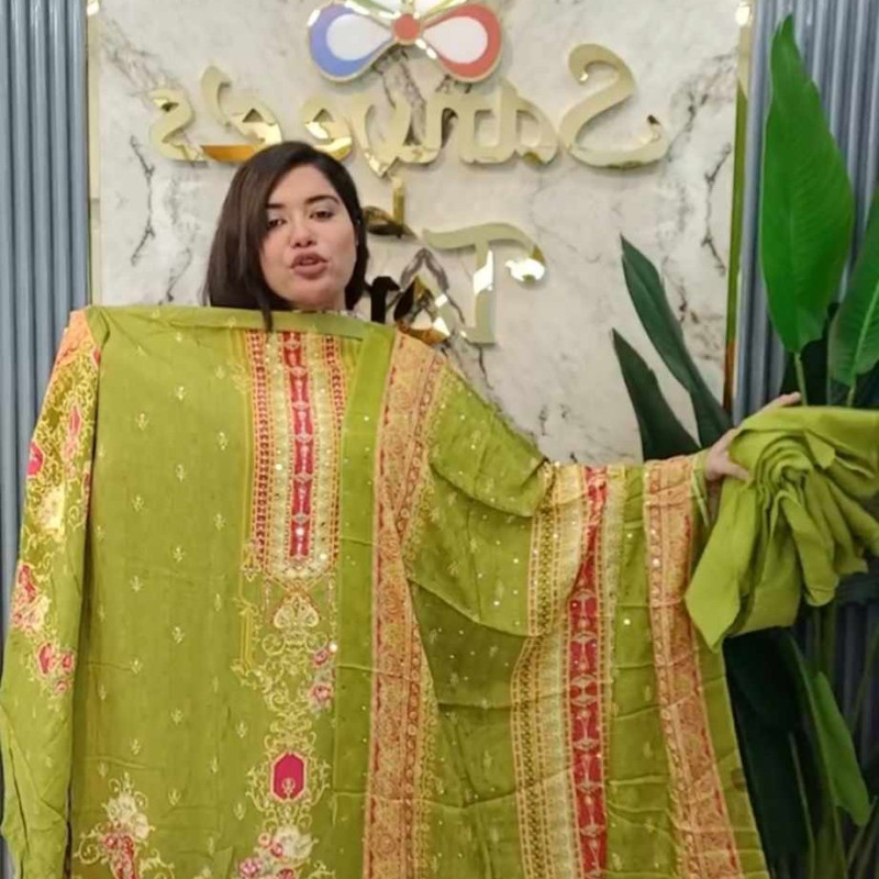 Orginal Indian Lahore Pure Maslin Cotton Stone Mirror work three piece