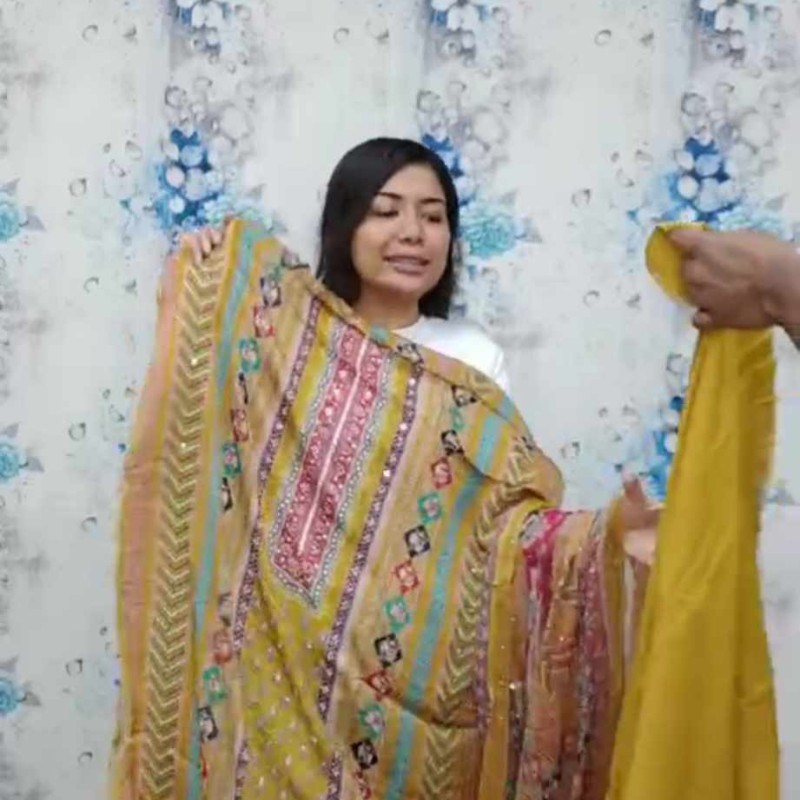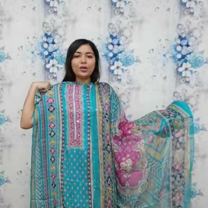 Orginal Indian Lahore Pure Silk Embrodiery Stone Mirror work three piece Delivery charge free