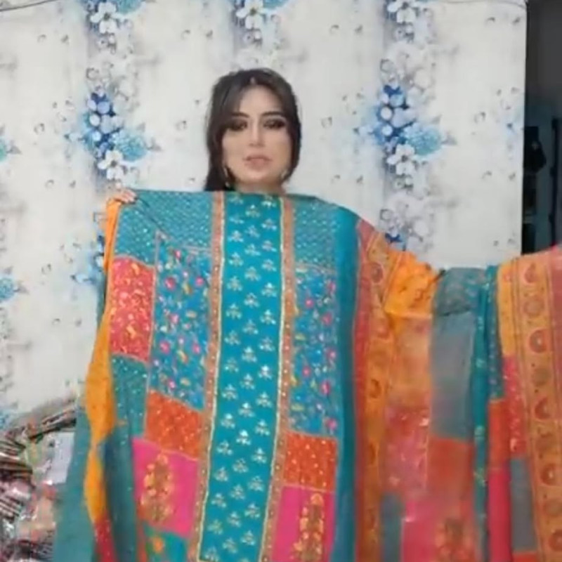 Orginal Indian Lahore Pure silk Embrodiery Stone Mirror work three piece /-