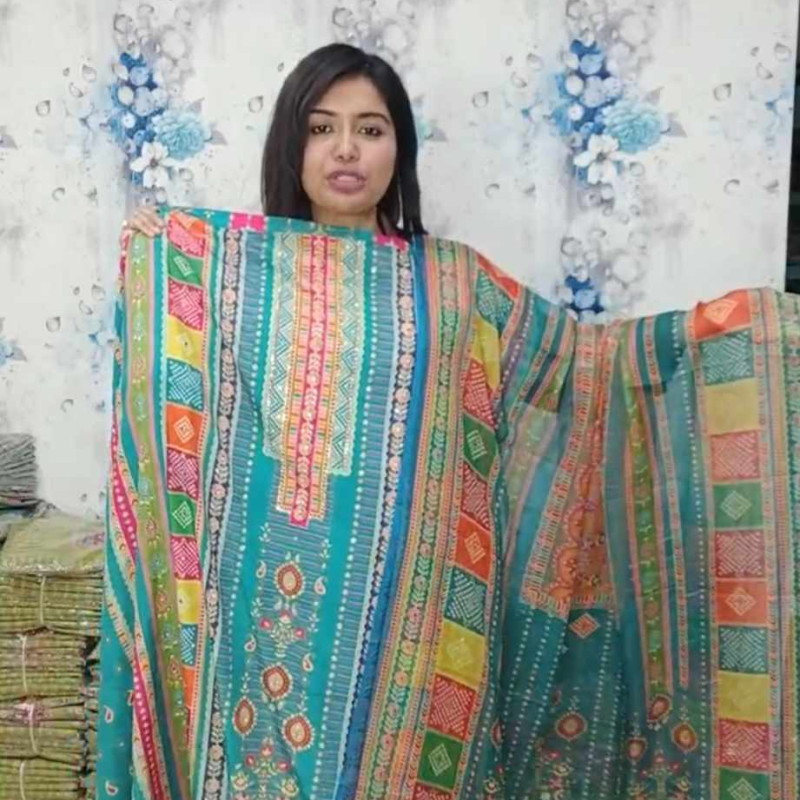 Orginal Indian Lahore Pure silk Embrodiery Stone Mirror work three piece /-