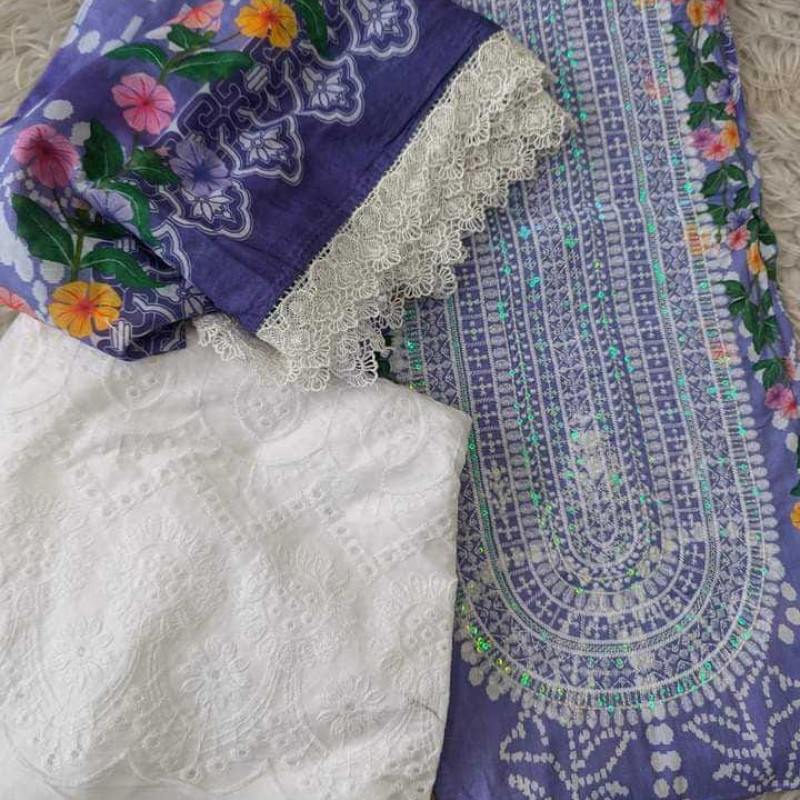 Pure Lawn Cotton Embroidery Sequence three piece