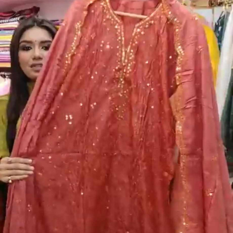 Pure Maslin Cotton Embroidery Sequence Stitch three piece Body - 48, Long - 43