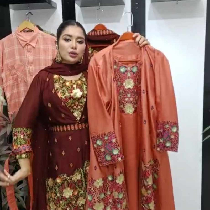 Pure Maslin Cotton Embroidery Stitch two piece Body- 48, Long - 50
