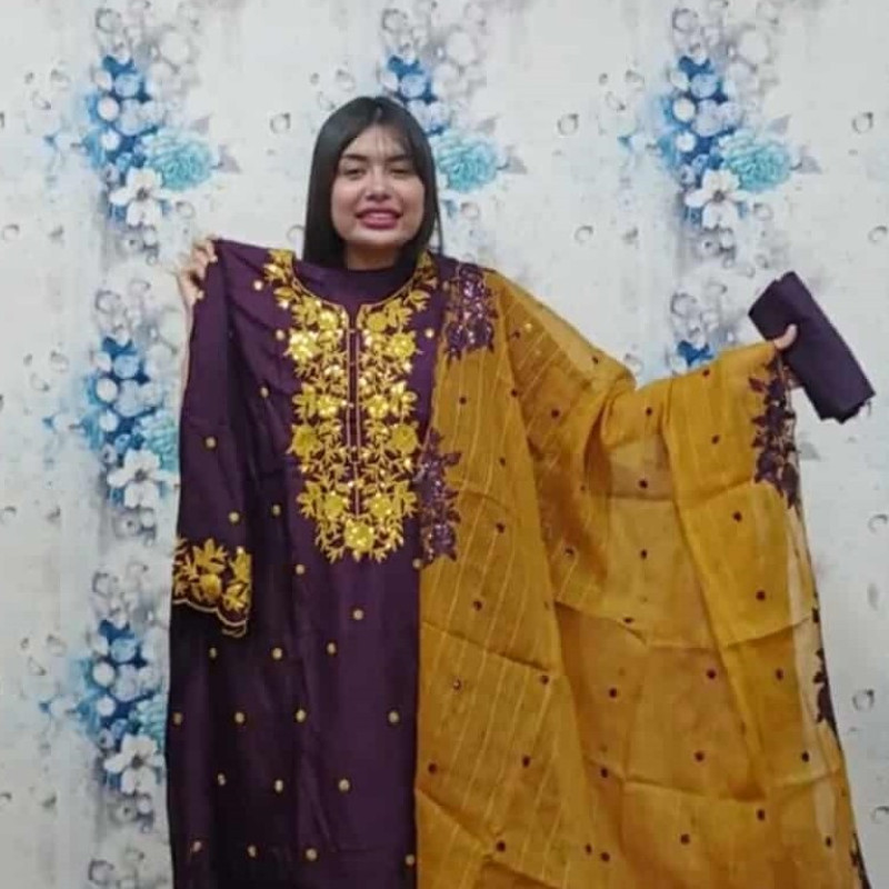 Pure Maslin Cotton Embroidery Sequence Semi Stitch three piece Body - 50, Long - 46 -