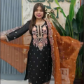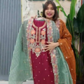 Pure Maslin Cotton Embroidery Sequence Semi Stitch three piece Body - 50, Long - 46