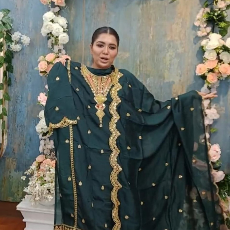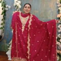 Pure Maslin Cotton Embroidery Sequence Semi Stitch three piece Body - 50, Long - 46