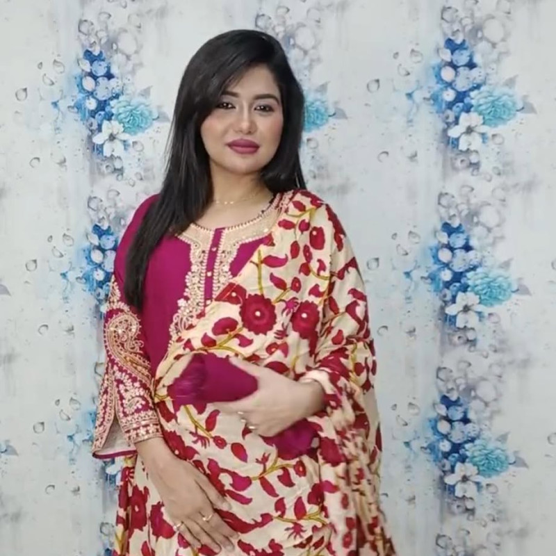 Pure Maslin Cotton Embroidery Sequence Semi Stitch three piece Body - 46, Long - 44 /-