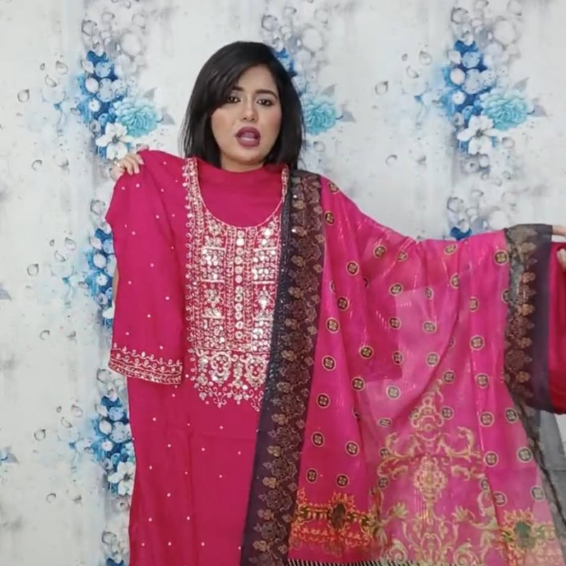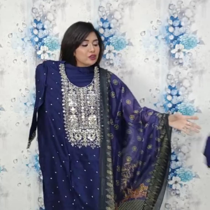 Pure Maslin Cotton Karchupi Stone Mirror work three piece Body - 48, Long - 46 /-