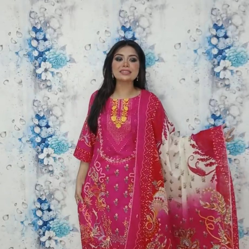 Pure Cotton Embroidery Matte Sequence three piece /-