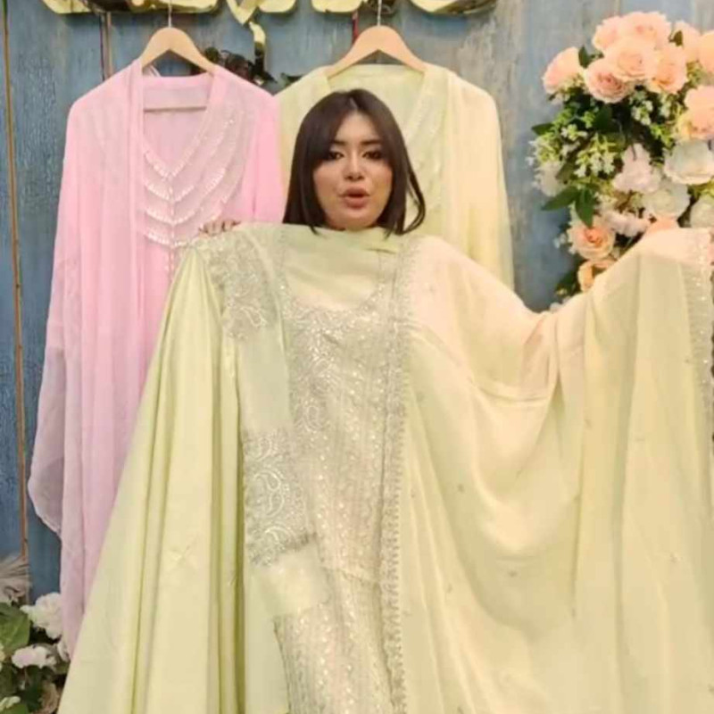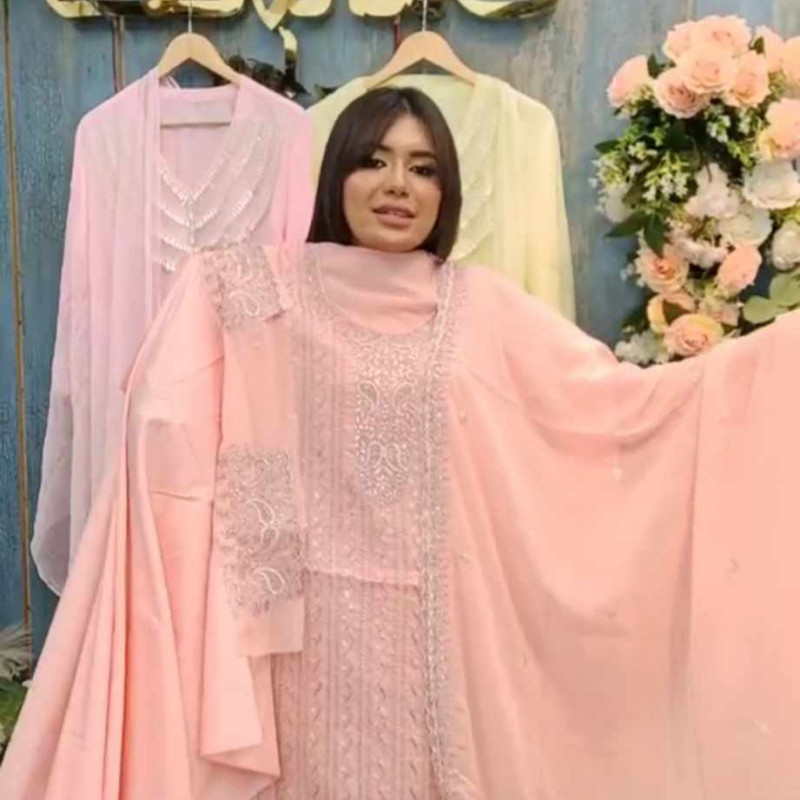 Pure Chiffon Georgette Embroidery Matte Sequence four piece /-
