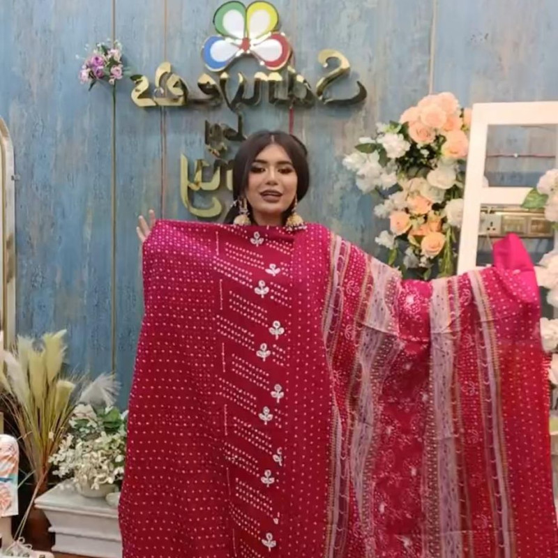 Pure Cotton Stone Mirror work three piece /-