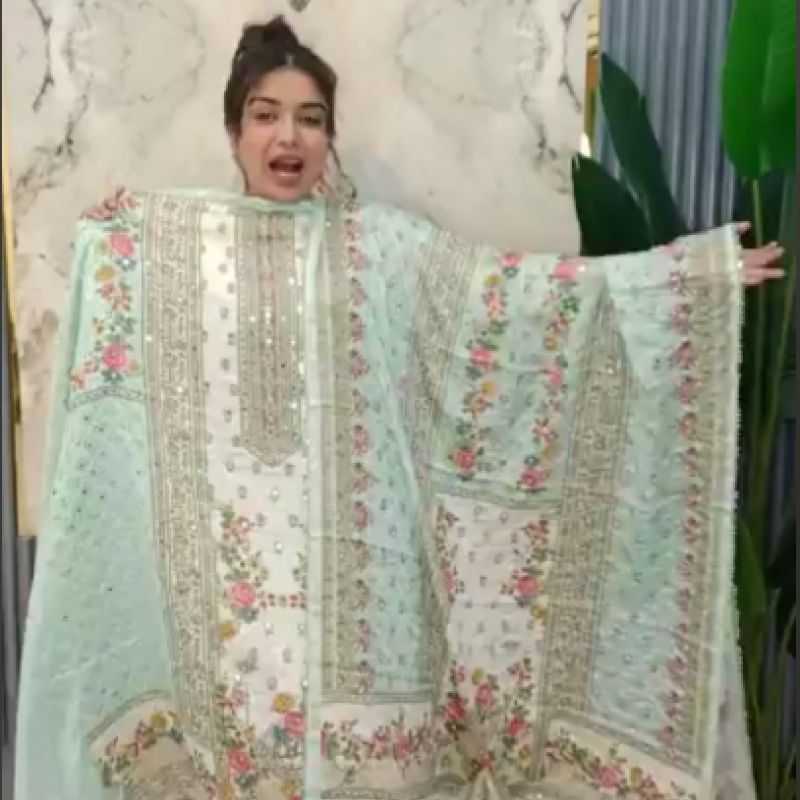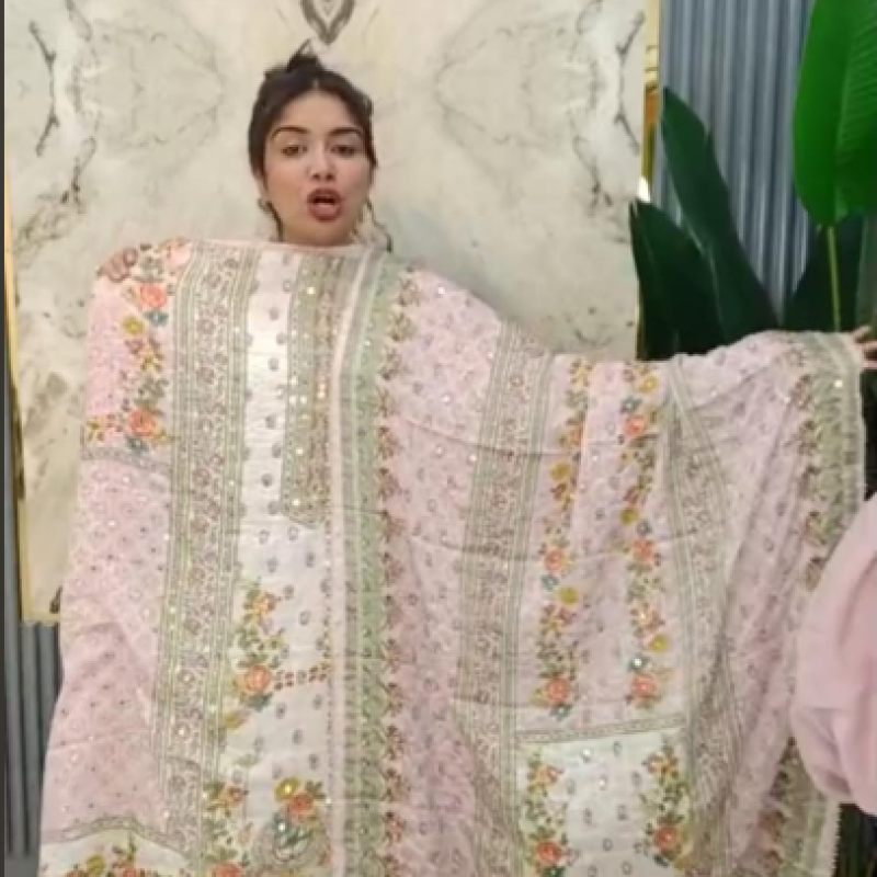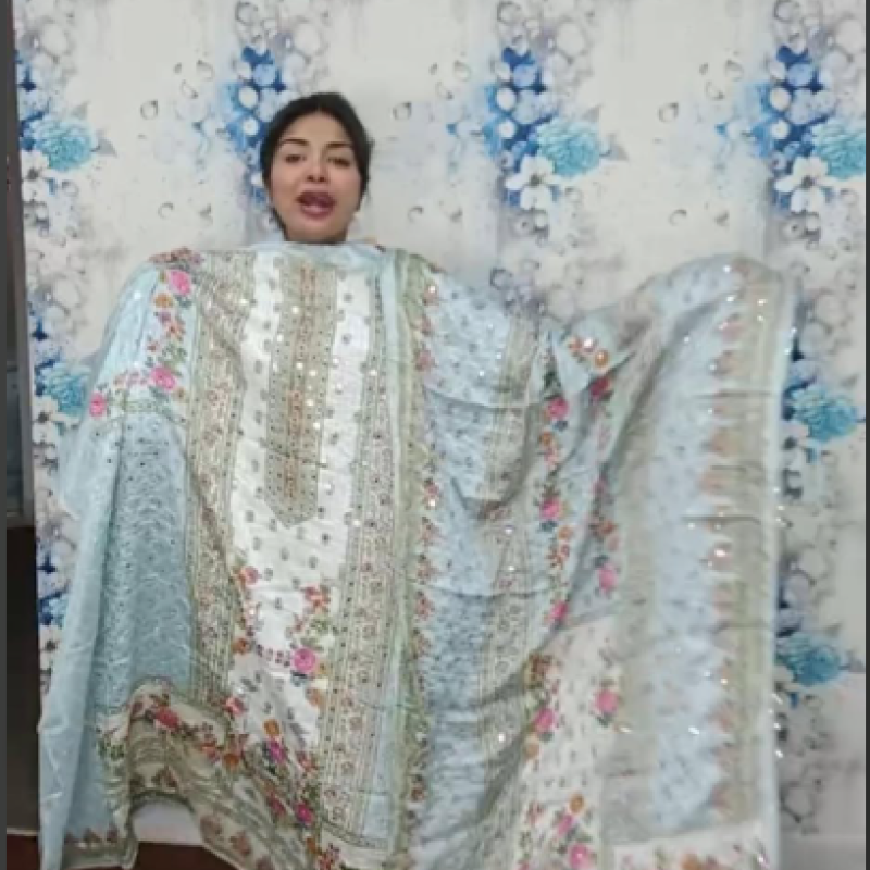 Pure Silk Embroidery Sequence Mirror work three piece